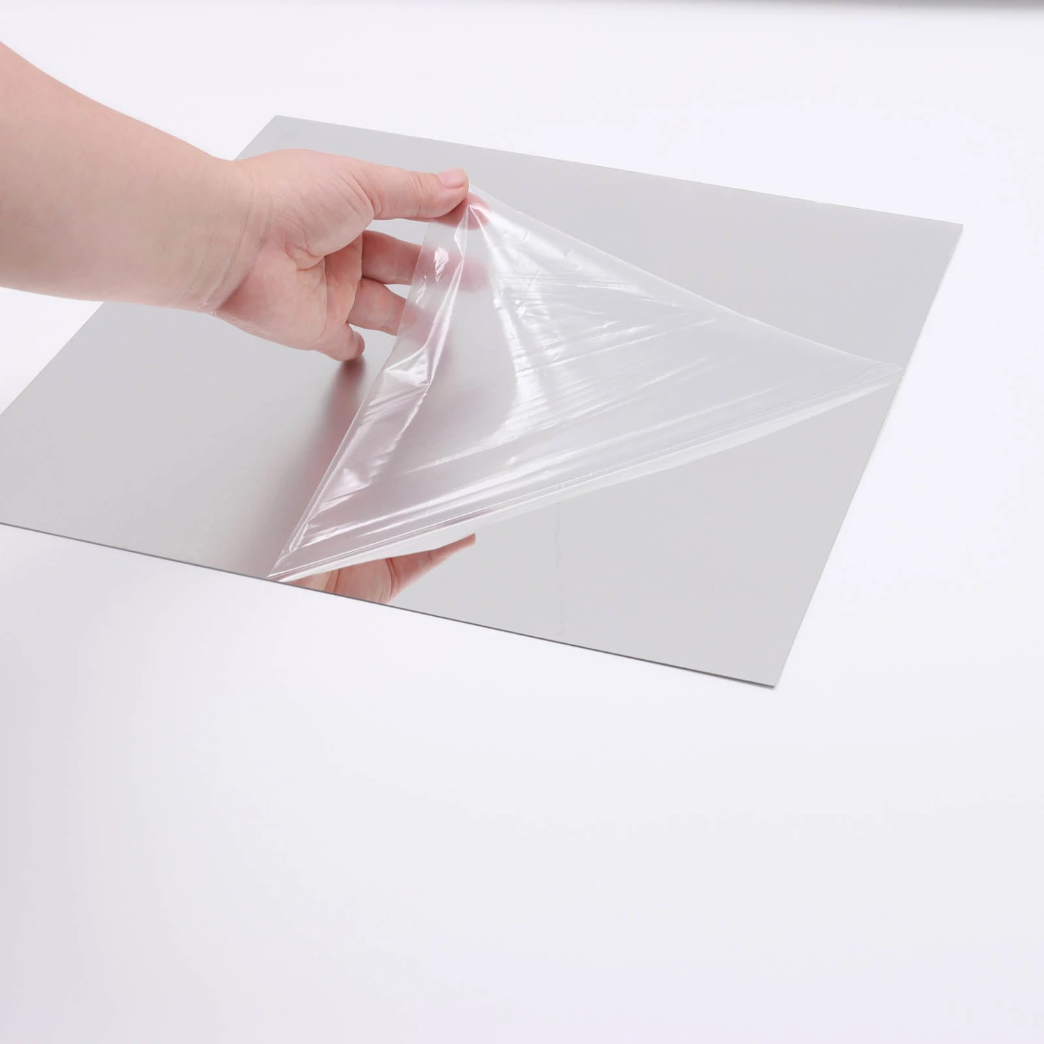 - Comes with a Protective Film to prevent scratches. Remove back Film to reveal adhesive to apply on wall. Remove Front Clear Film before Assembly