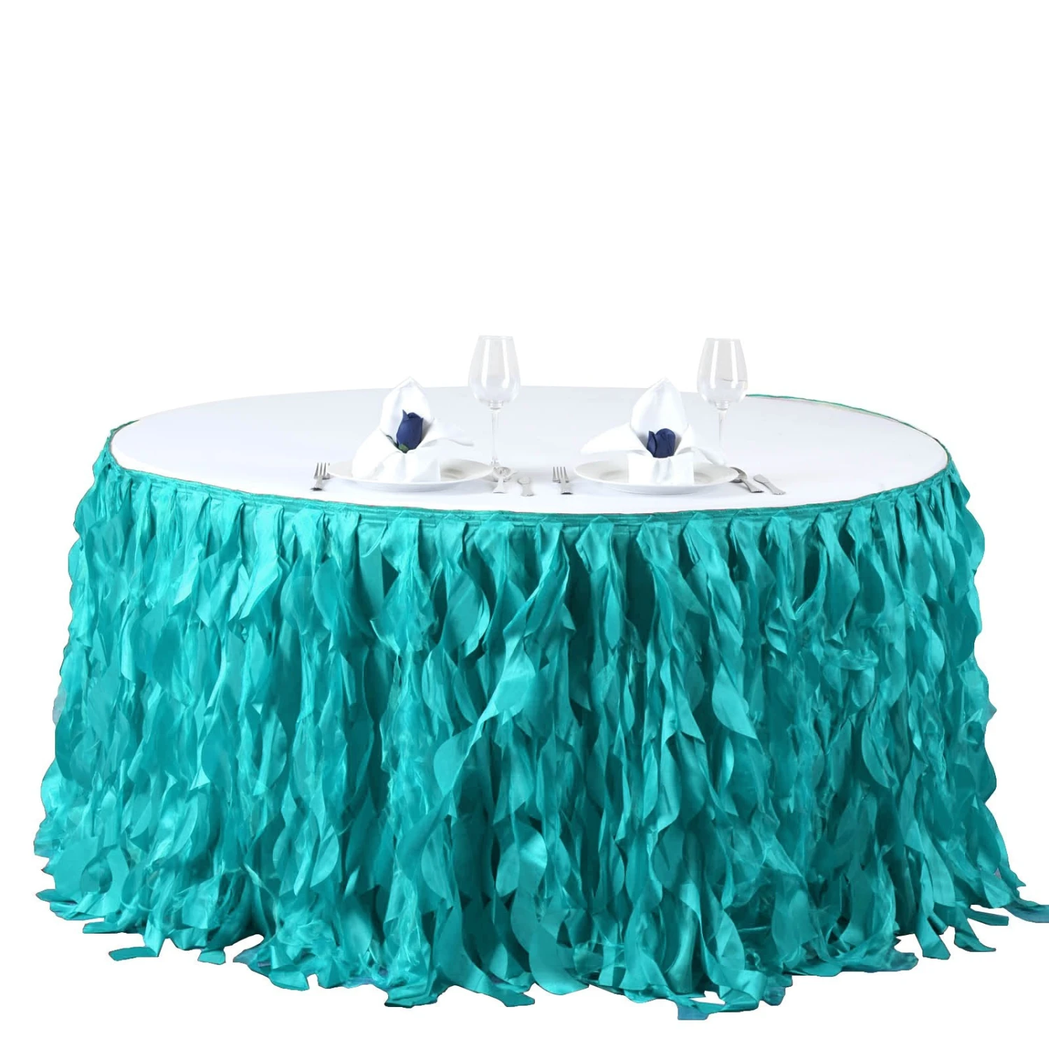 - For 1 piece table skirt only. Tablecloth and decorations are not included.