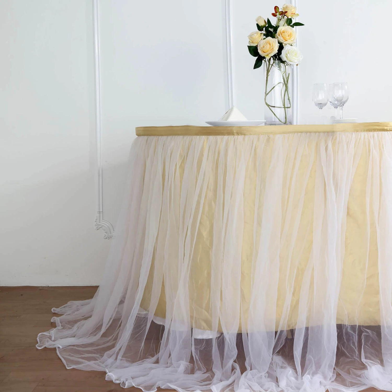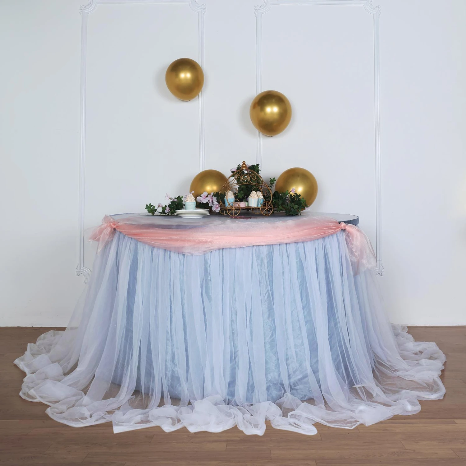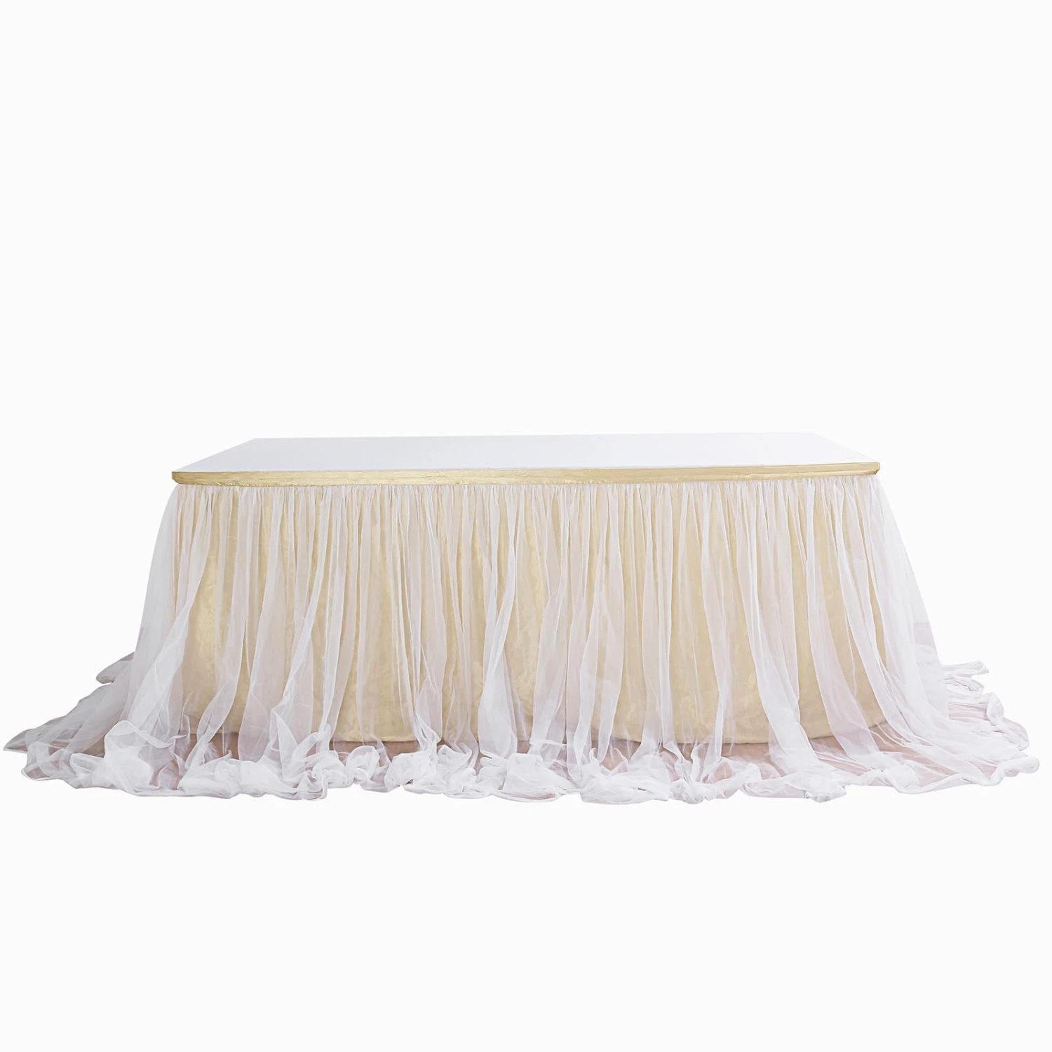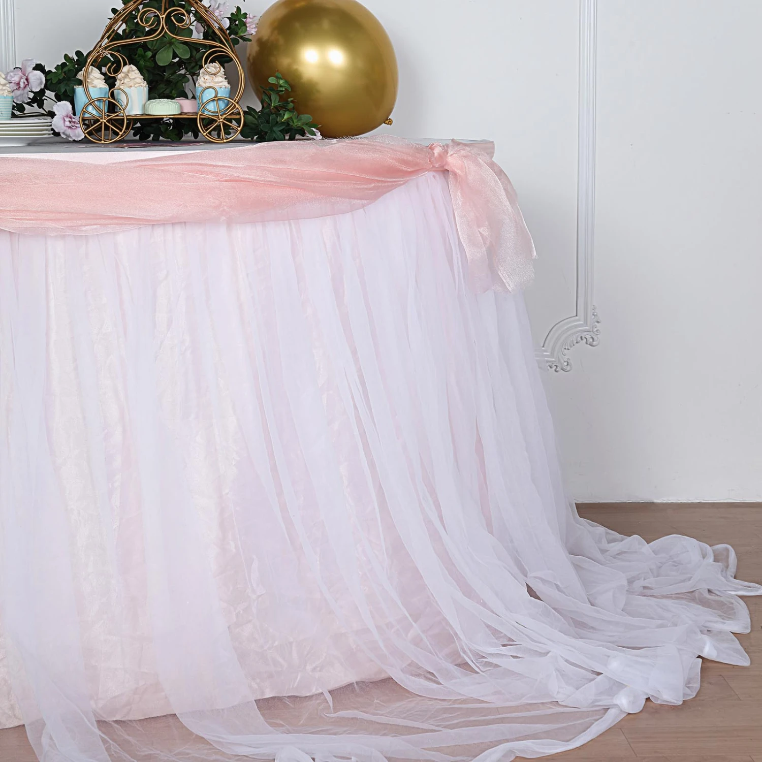 - Style: Extra Long Tulle Table Skirt w/Satin Edge