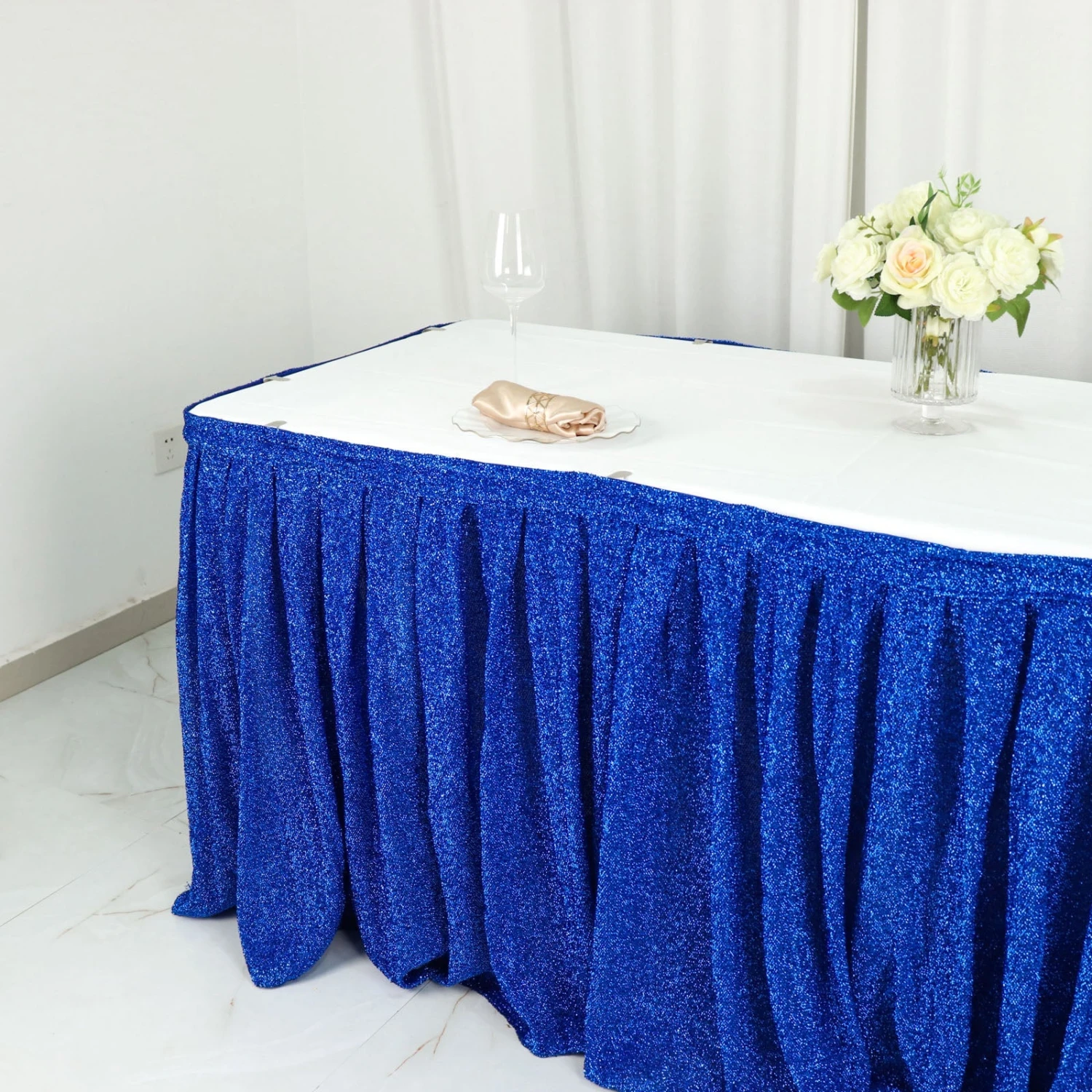- 17ft Skirts: Covers 4 sides on a 6ft x 2 1/2ft banquet table ( similar to the ones you find in Costco) – 15 clips recommended, Covers 3 sides on an 8ft x 2 1/2ft banquet table