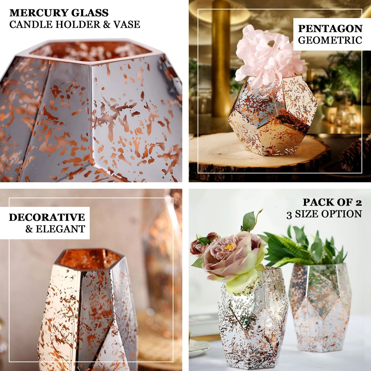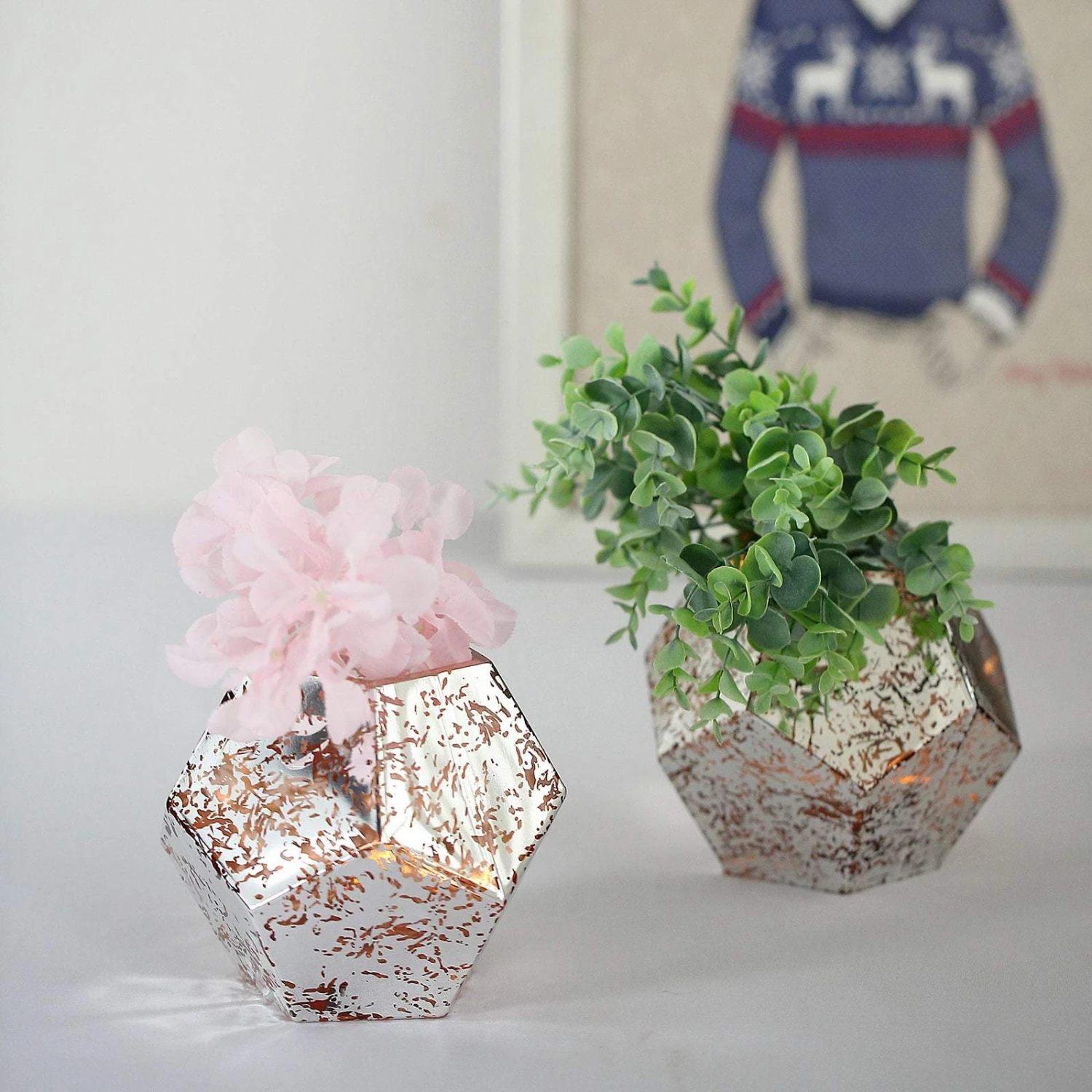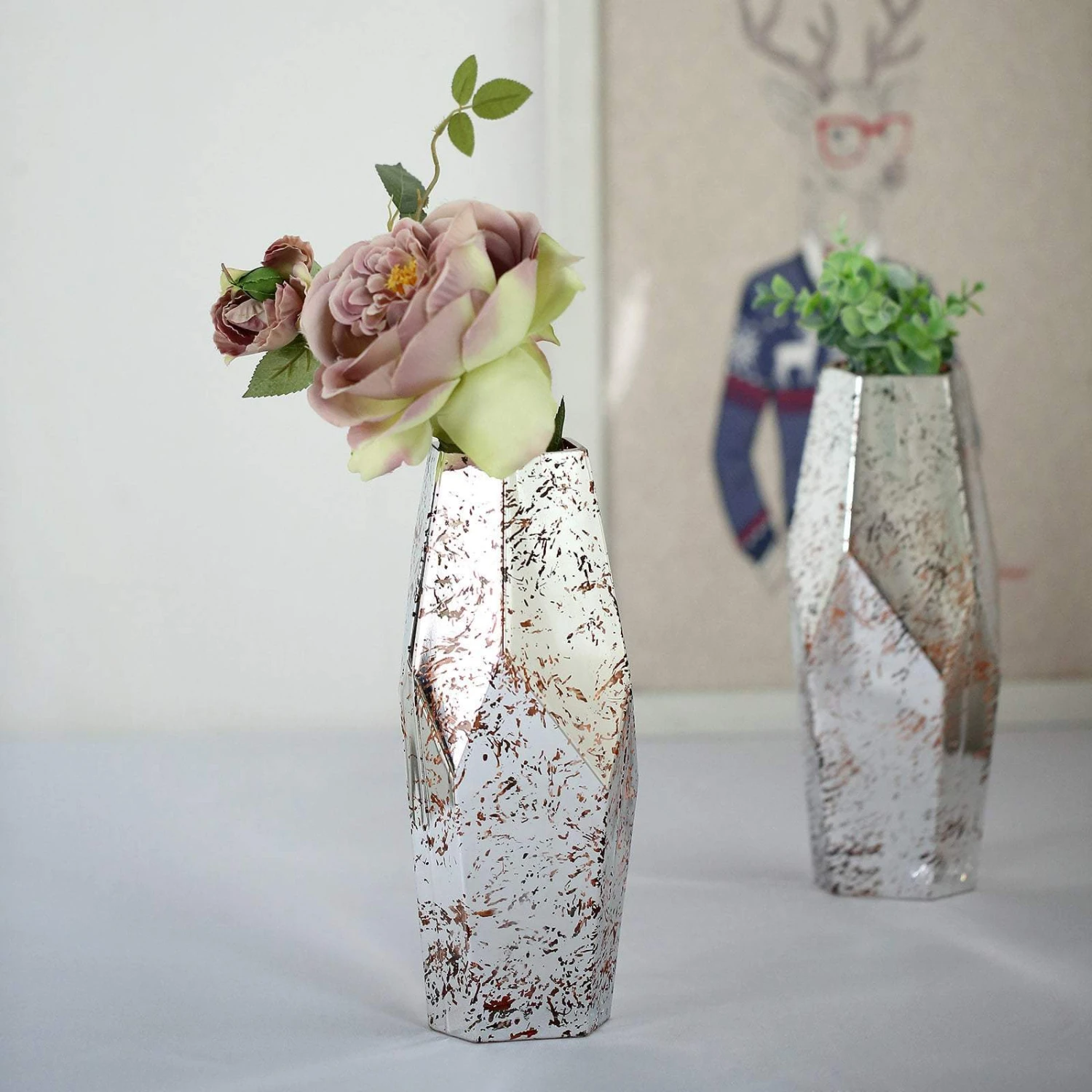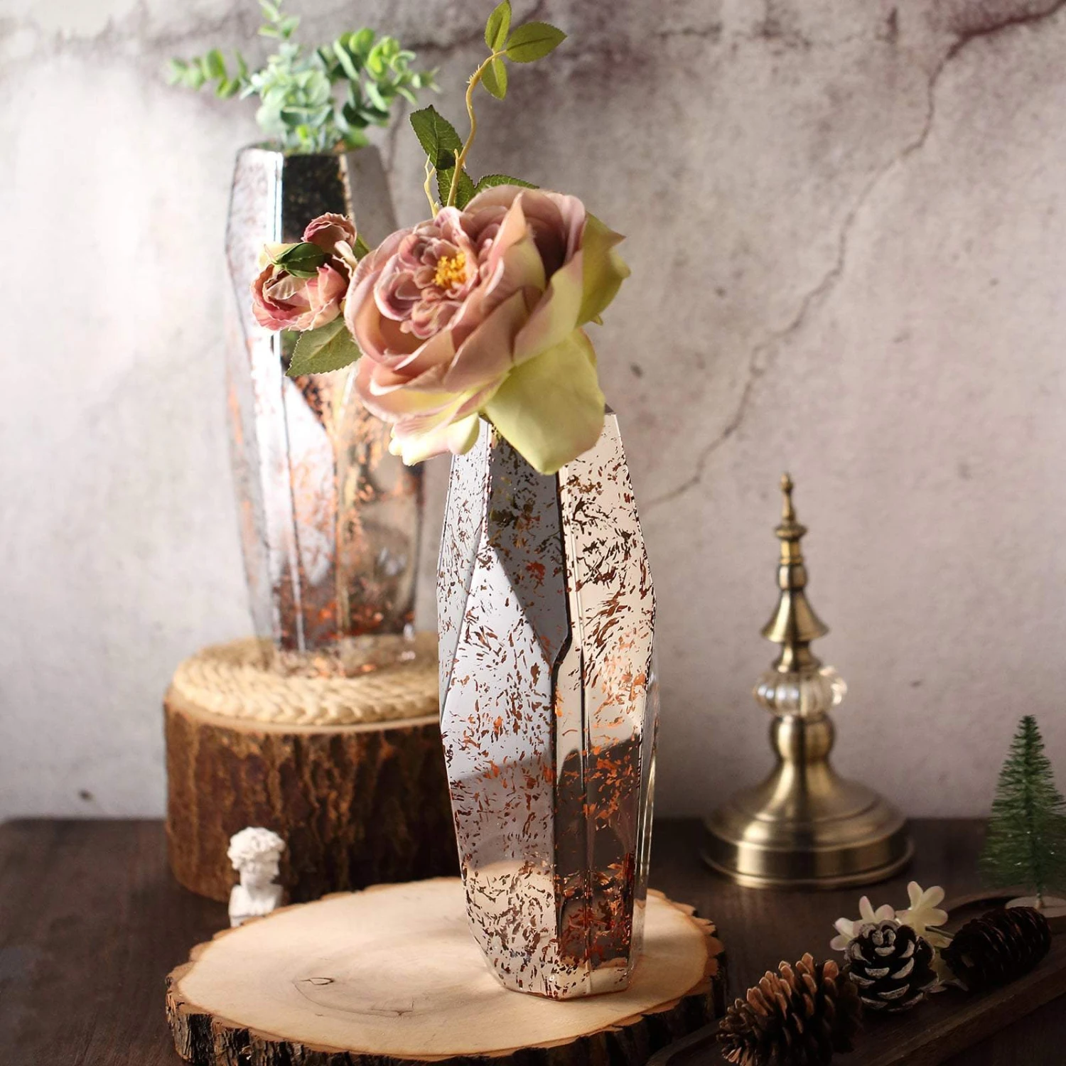 - Quantity: 2 Mercury Glass Vases