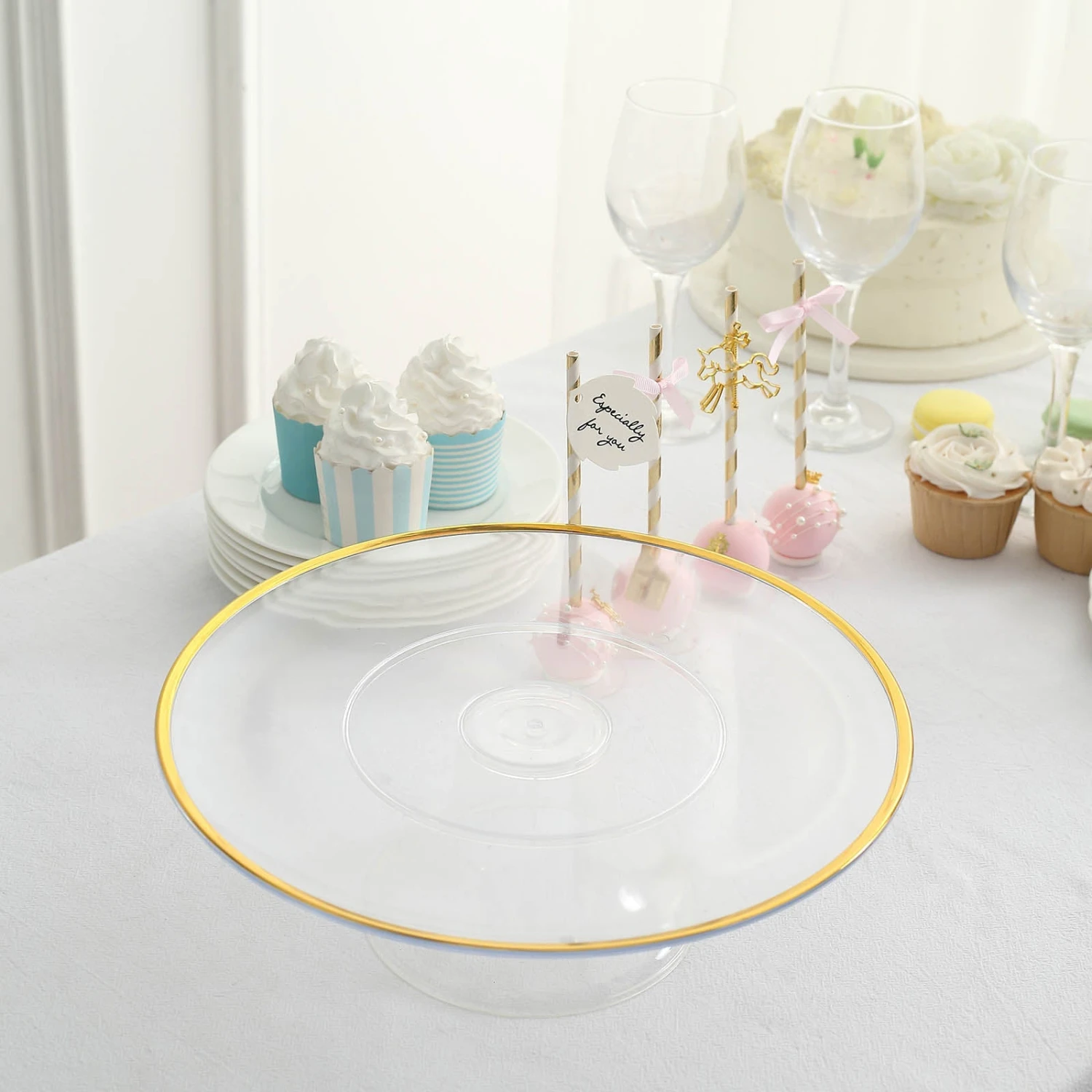 - Style: Round Pedestal Cake Stand w/ Gold Rim