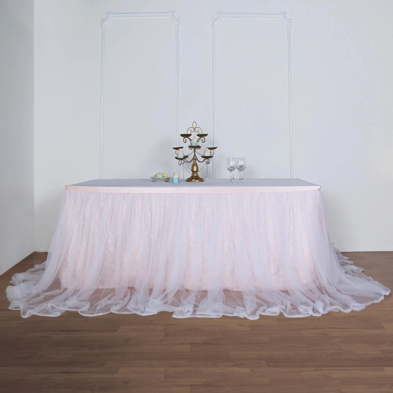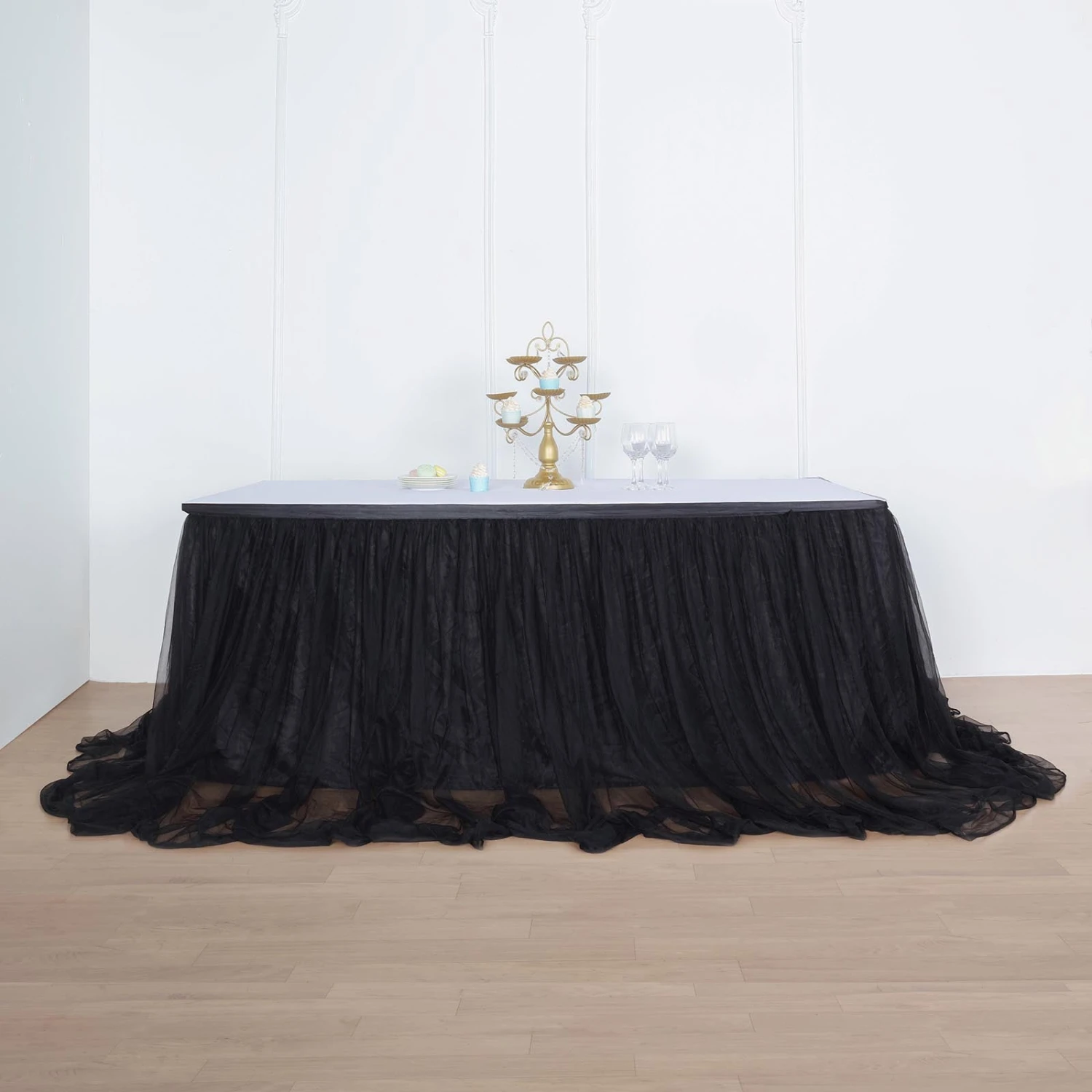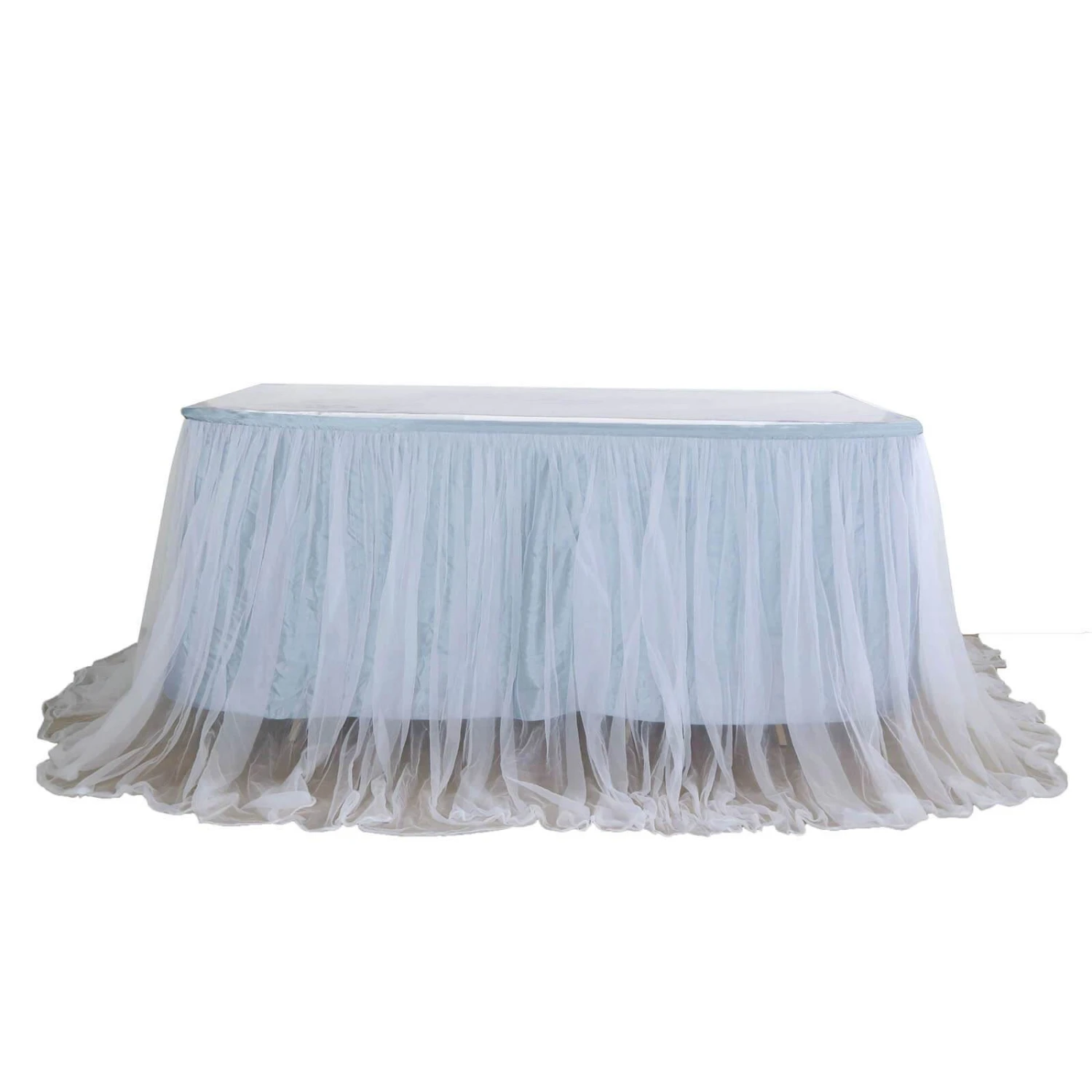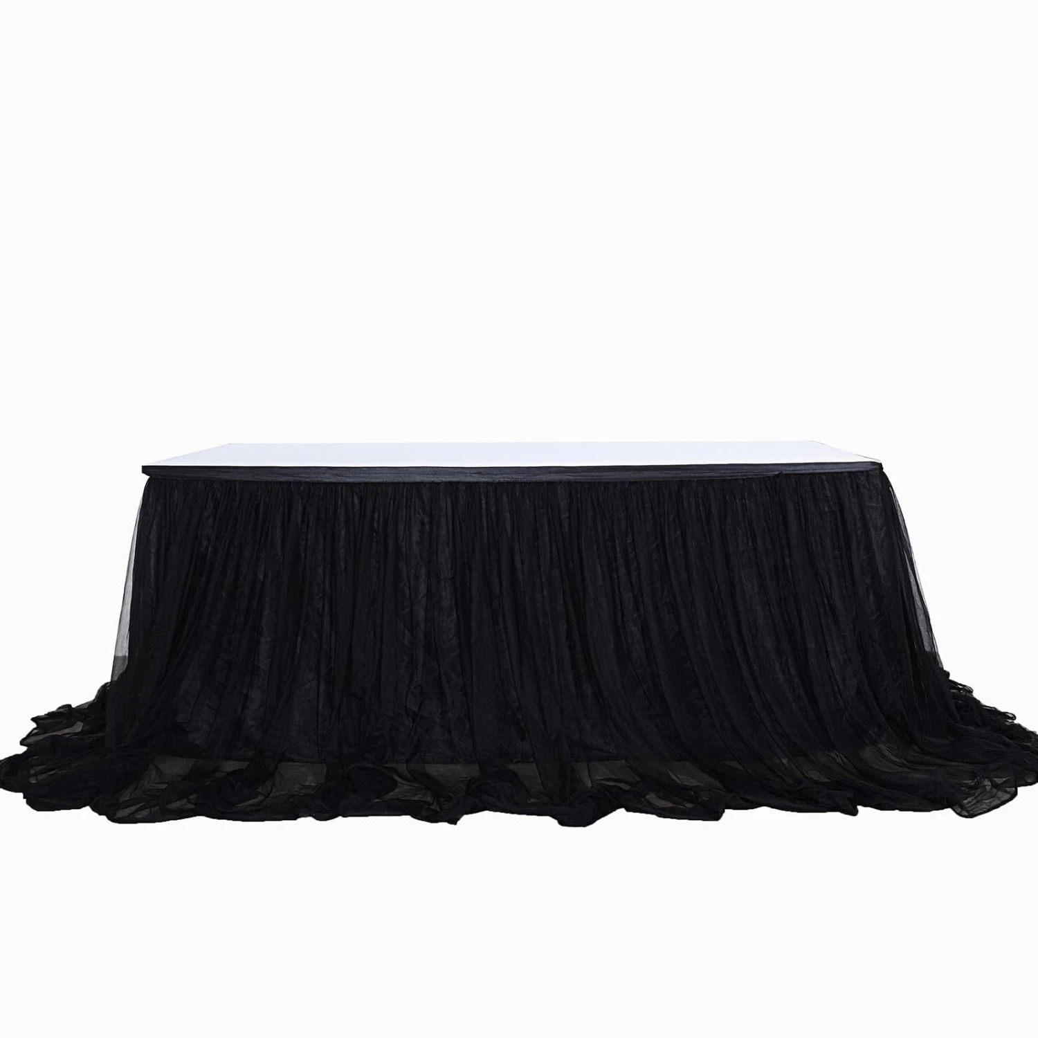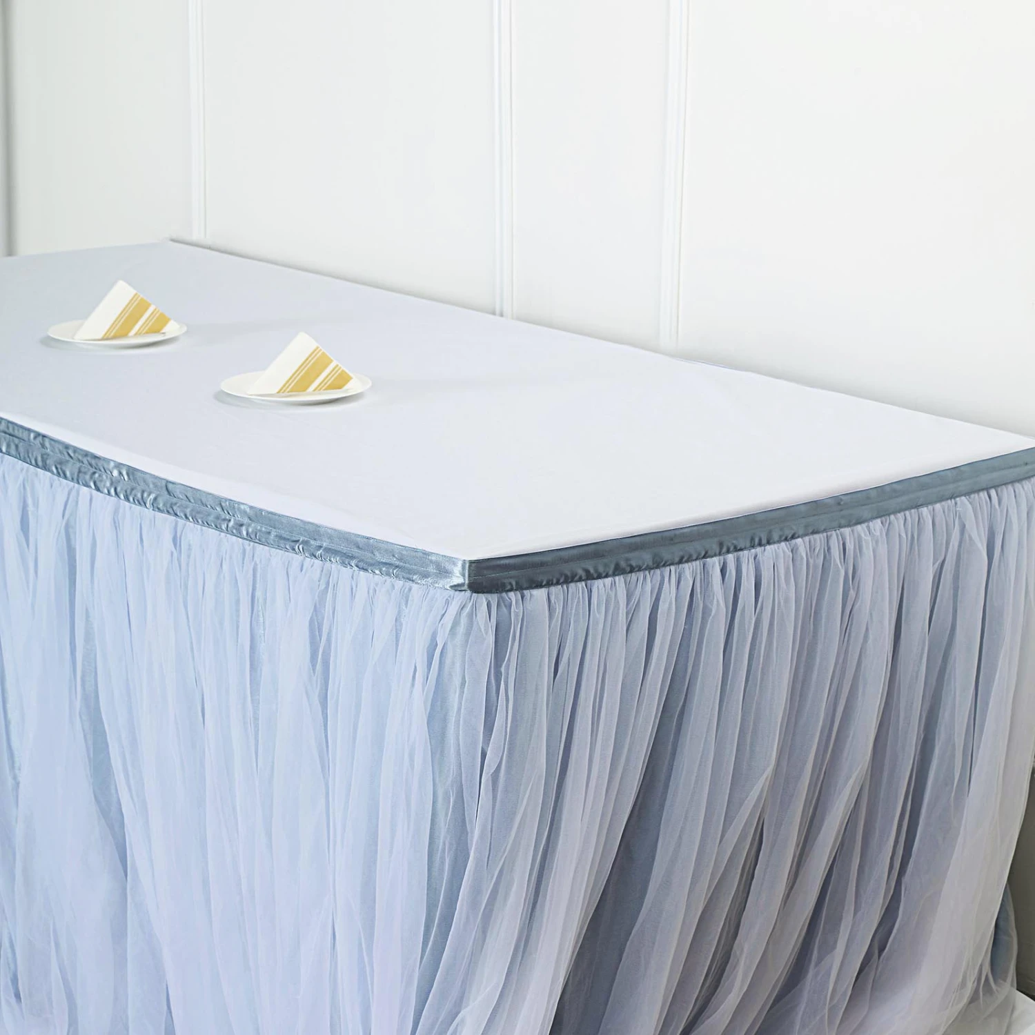 - Style: Extra Long Tulle Table Skirt w/Satin Edge