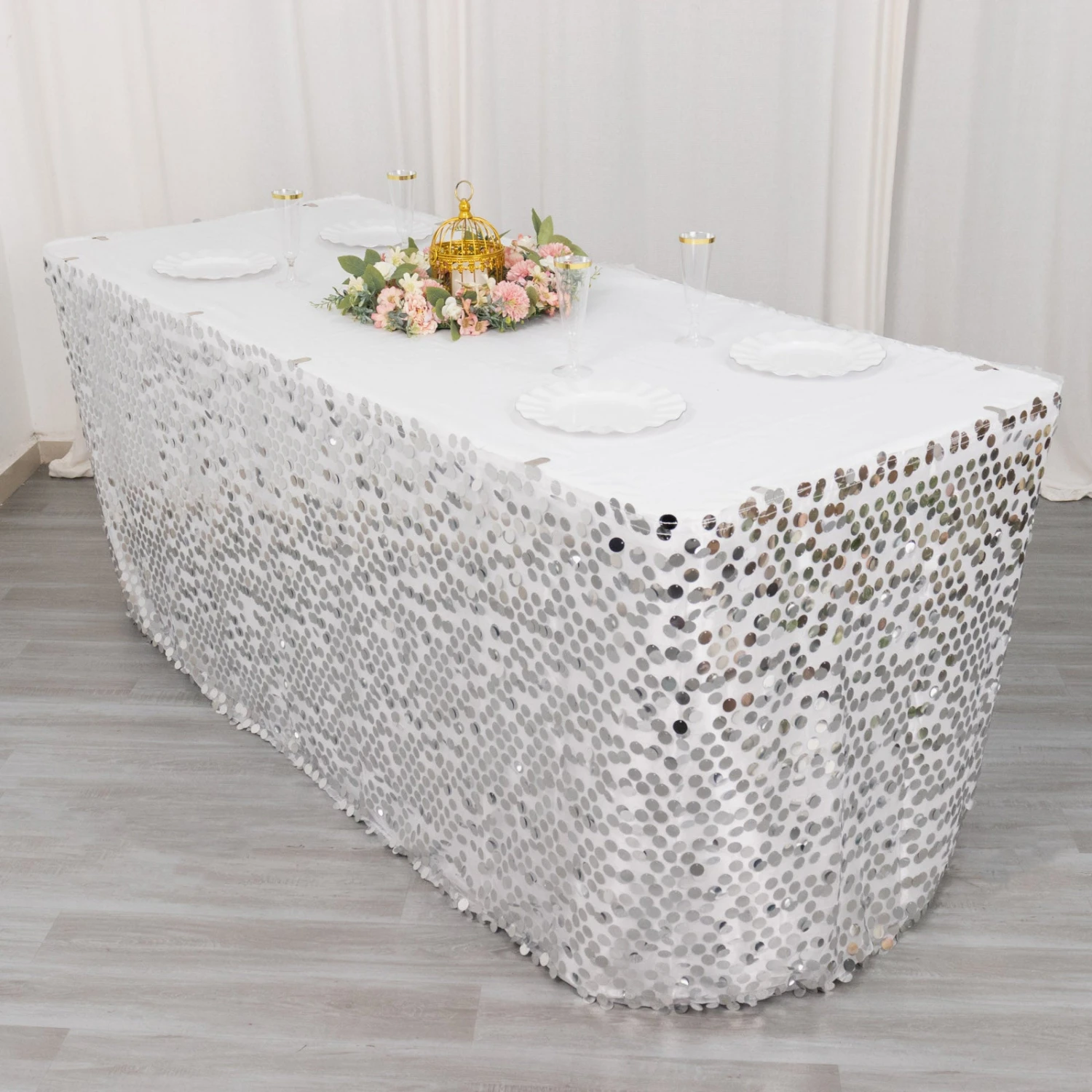 - For 1 piece table skirt only. Tablecloth and decorations are not included.