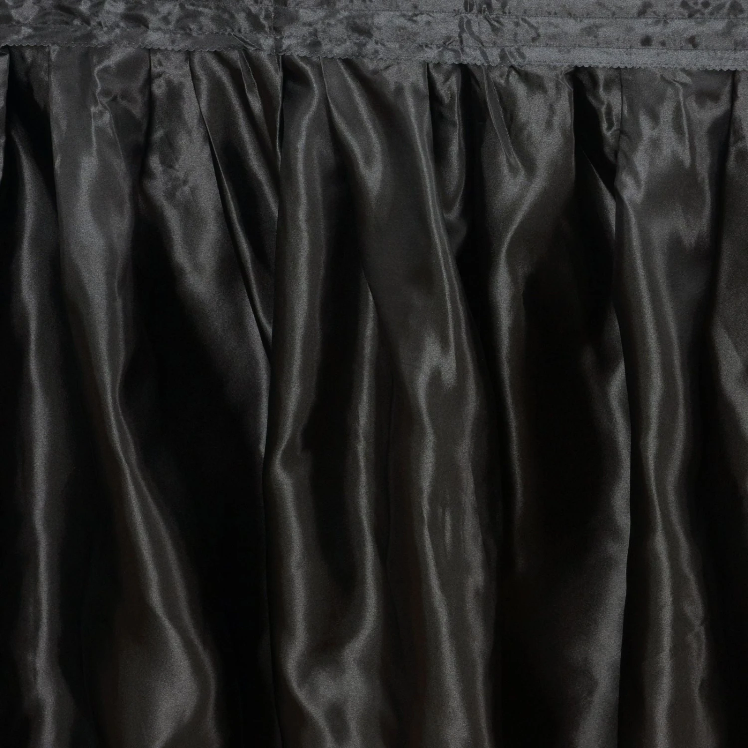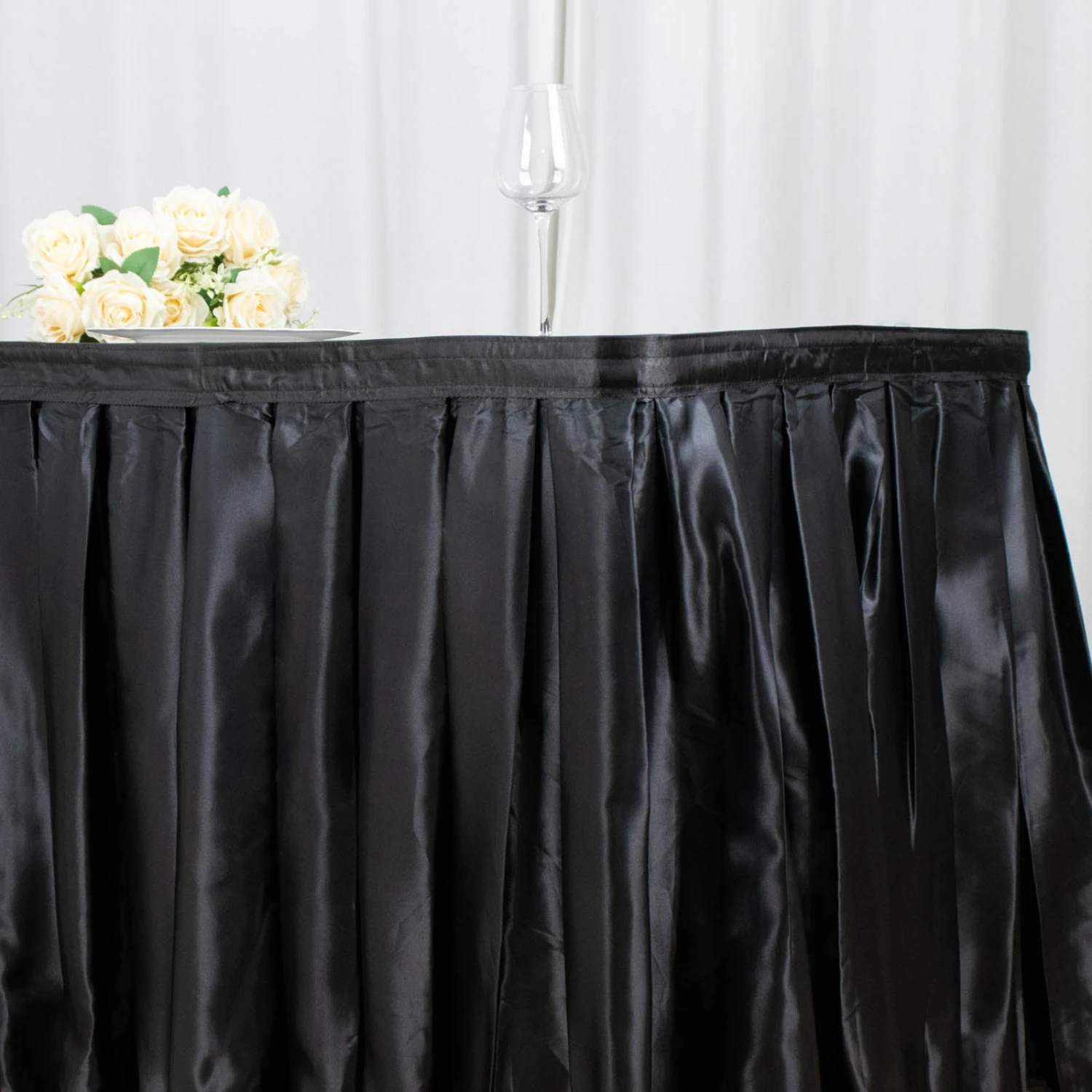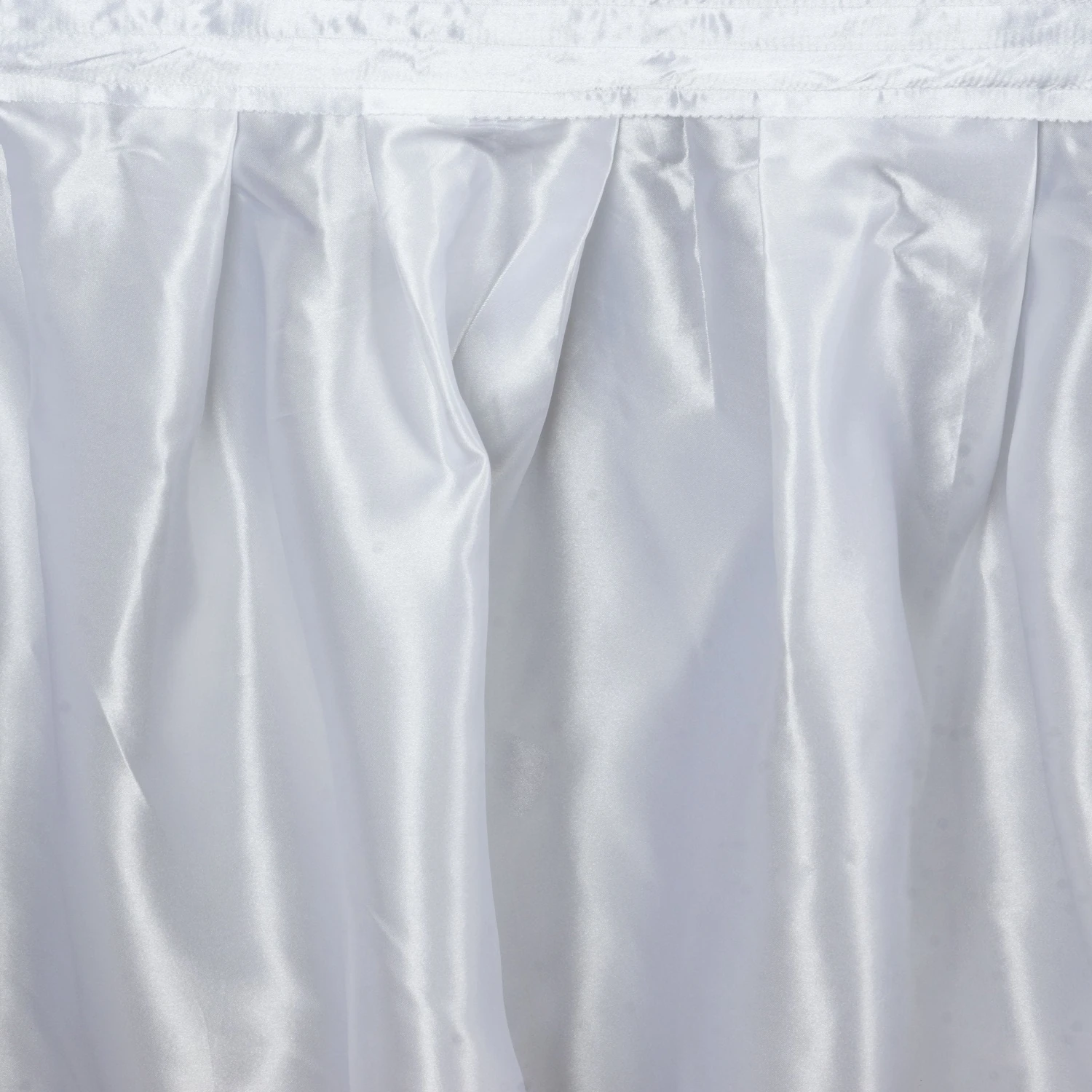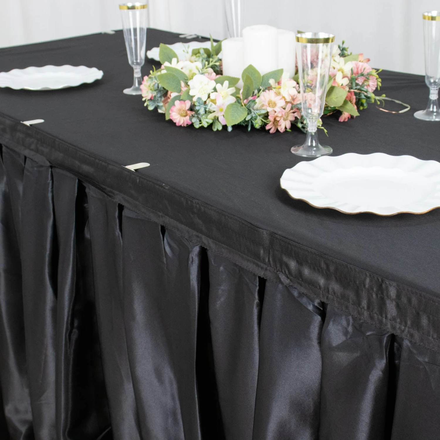 - 17ft Skirts: Covers 4 sides on a 6ft x 2 1/2ft banquet table ( similar to the ones you find in Costco) – 15 clips recommended, Covers 3 sides on an 8ft x 2 1/2ft banquet table.