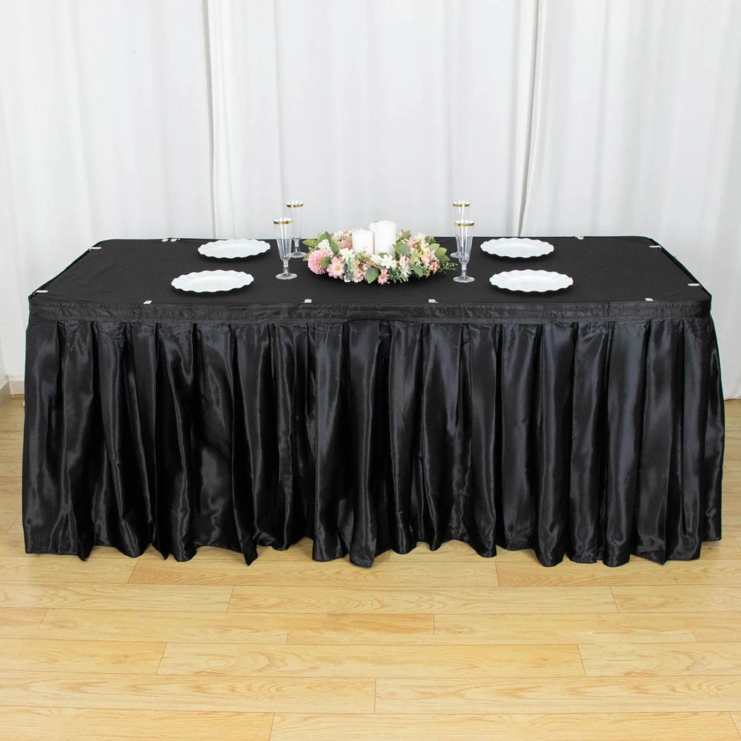 - 21ft Skirts: Covers 4 sides on an 8ft x 2 1/2ft banquet table – 20 clips minimum needed – 24 clips recommended.