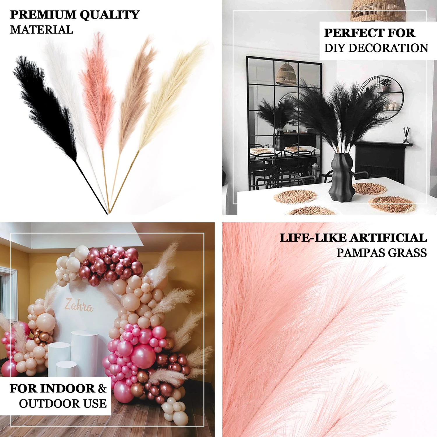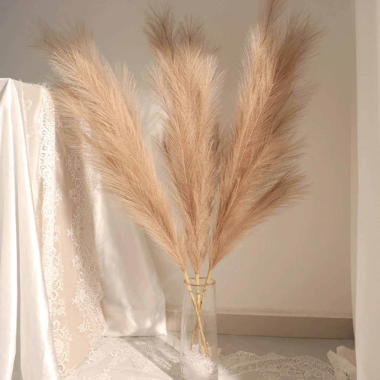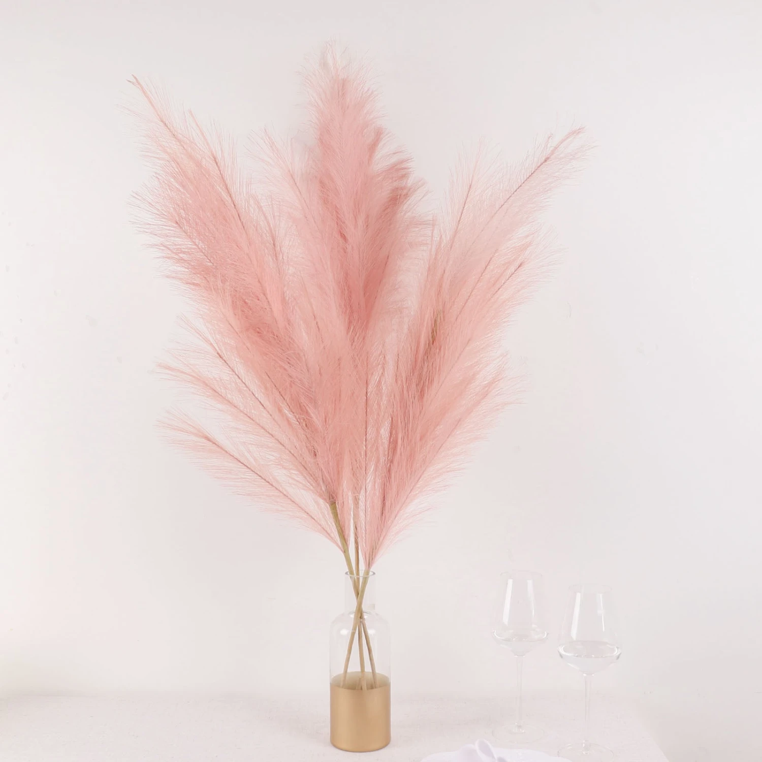 - Unlike dried natural pampas grass, the artificial pampas don’t shed or deform