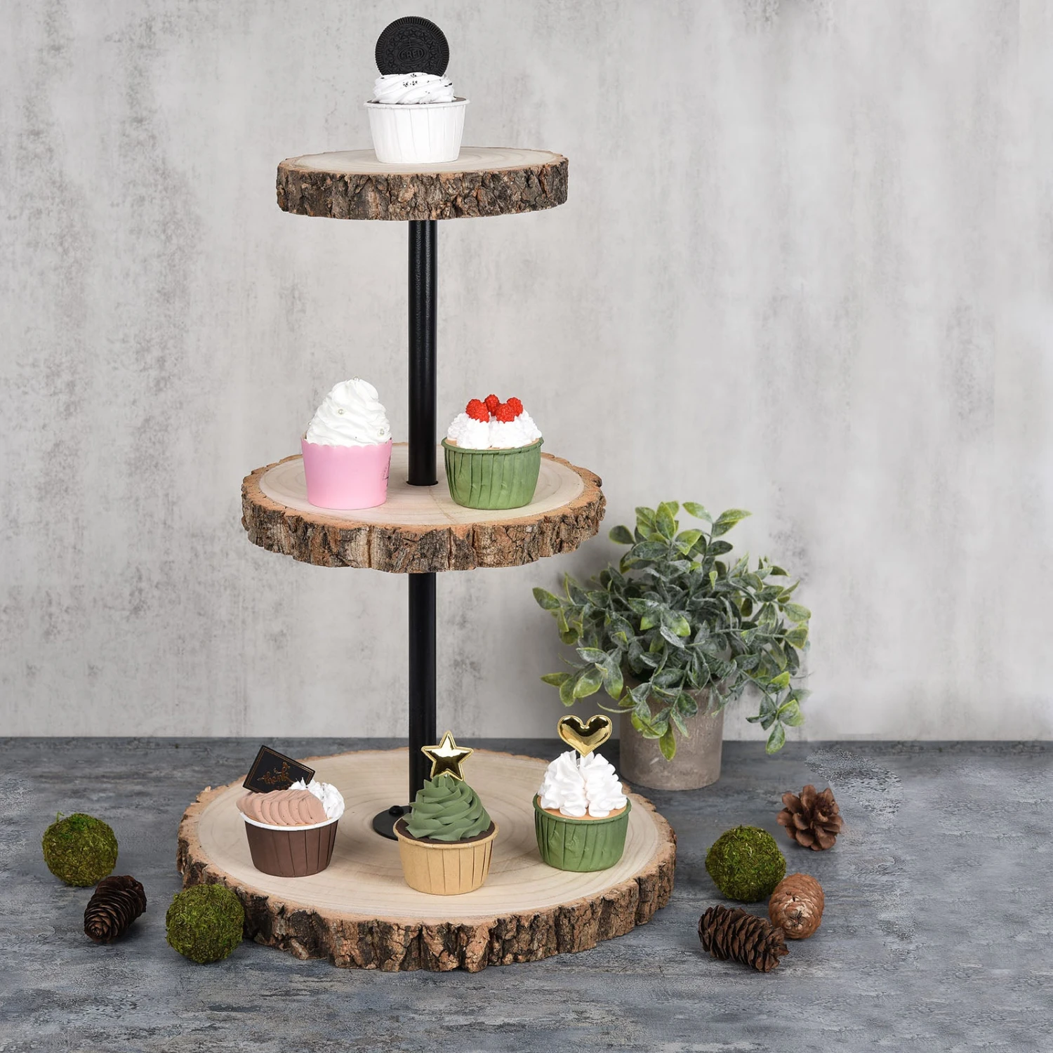 - Style: 3 Tier Wooden Cupcake Stand w/ Metal Poles