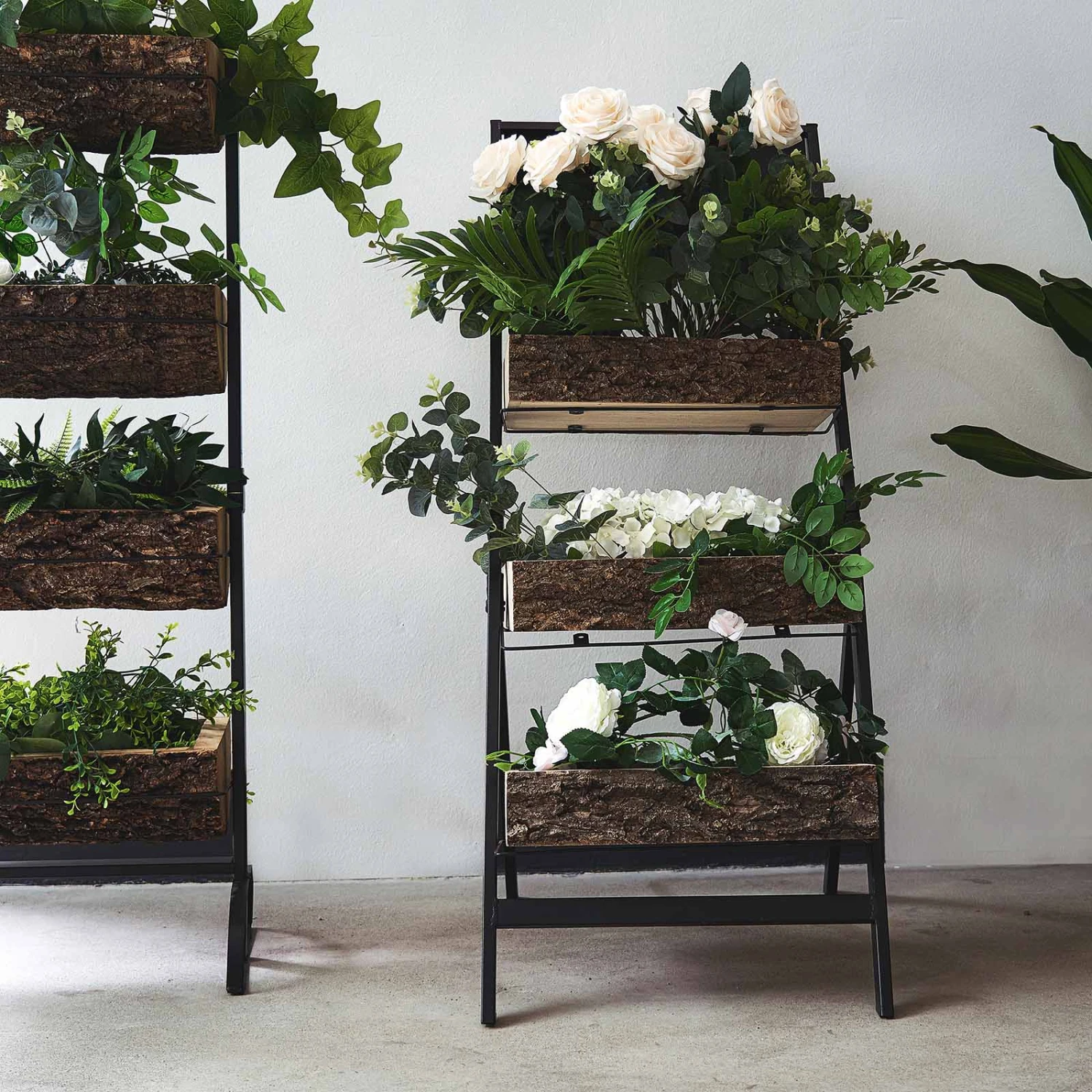 - Quantity: 3-Tier Wood Planters w/Metal Rack