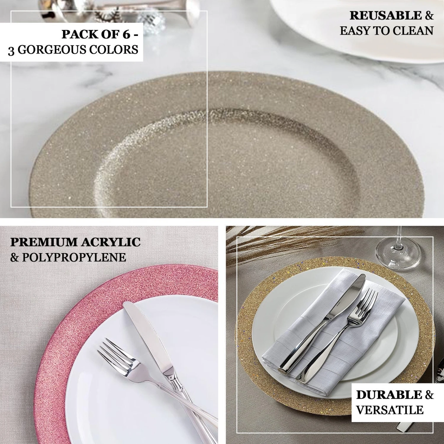 - Quantity: 6 Charger Plates