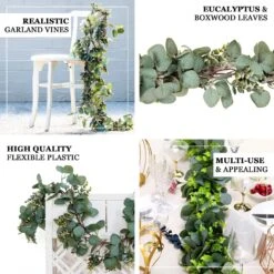 Frosted Green Artificial Eucalyptus And Boxwood Leaf Garland Vine 6ft