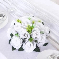 2 Pack Artificial Flower Ball Bouquets For Centerpieces 15-Head Silk Rose Kissing Balls 10″