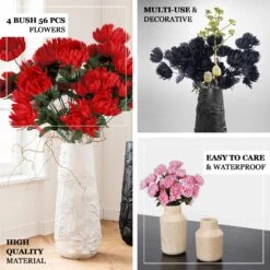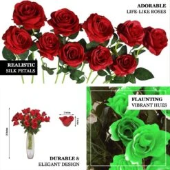 4 Bushes Artificial Silk Rose Bud Flowers, Faux Bouquets 25″ Long Stem