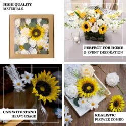 34 Pcs Artificial Rose, Silk Sunflower & Blueberry Stems Mix Flower Box – Burgundy/Pink