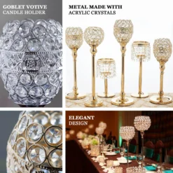 2 Pack | Blush/Rose Gold Geometric Metal Wired Candle Holder Set & Glass Votive Holder Set