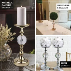 2 Pack Metallic Pillar Candle Holder Set, Votive Candle Stands With Clear Acrylic Ball 13″