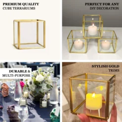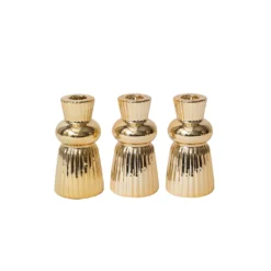 3 Pack Mercury Glass Votive Hurricane Candle Holder, Pillar Vase – Wavy Column Design 5″
