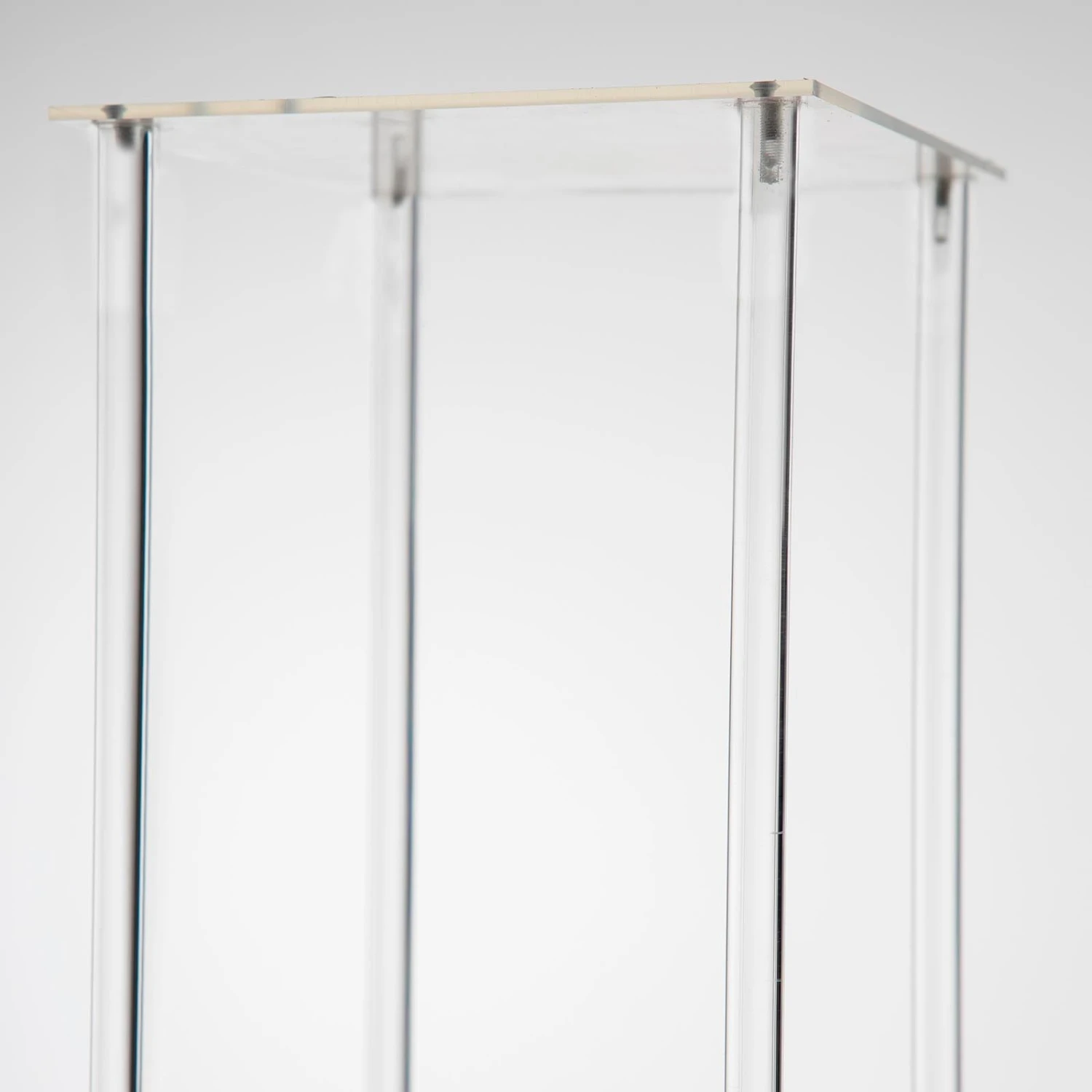 - How to Care: Cleaning acrylic pillar stand should consist of wipe-cleaning with a soft rag or cloth while using a non-abrasive cleaner. For light stains or debris, you can also use canned air or clean water with a microfiber cloth. You should never use window cleaners, cleaning solvents with ammonia, or other chemical sprays as they can scratch or damage your acrylic products.