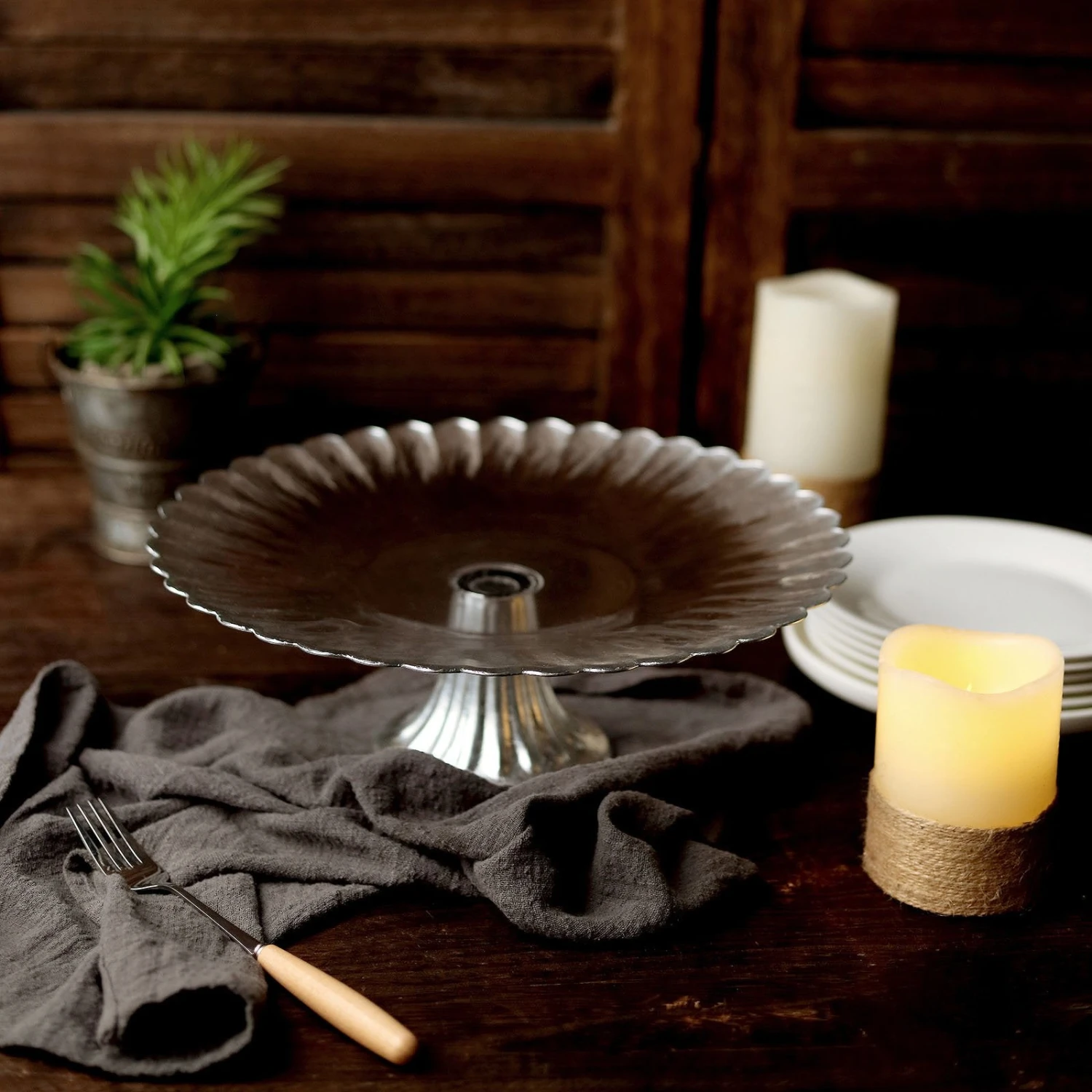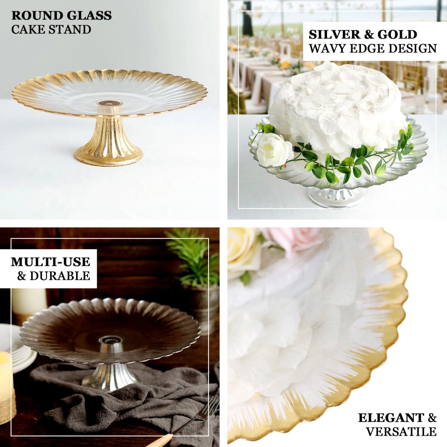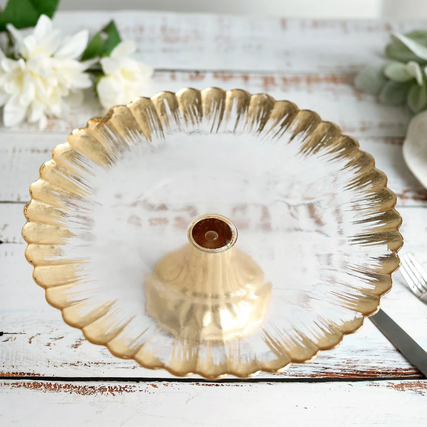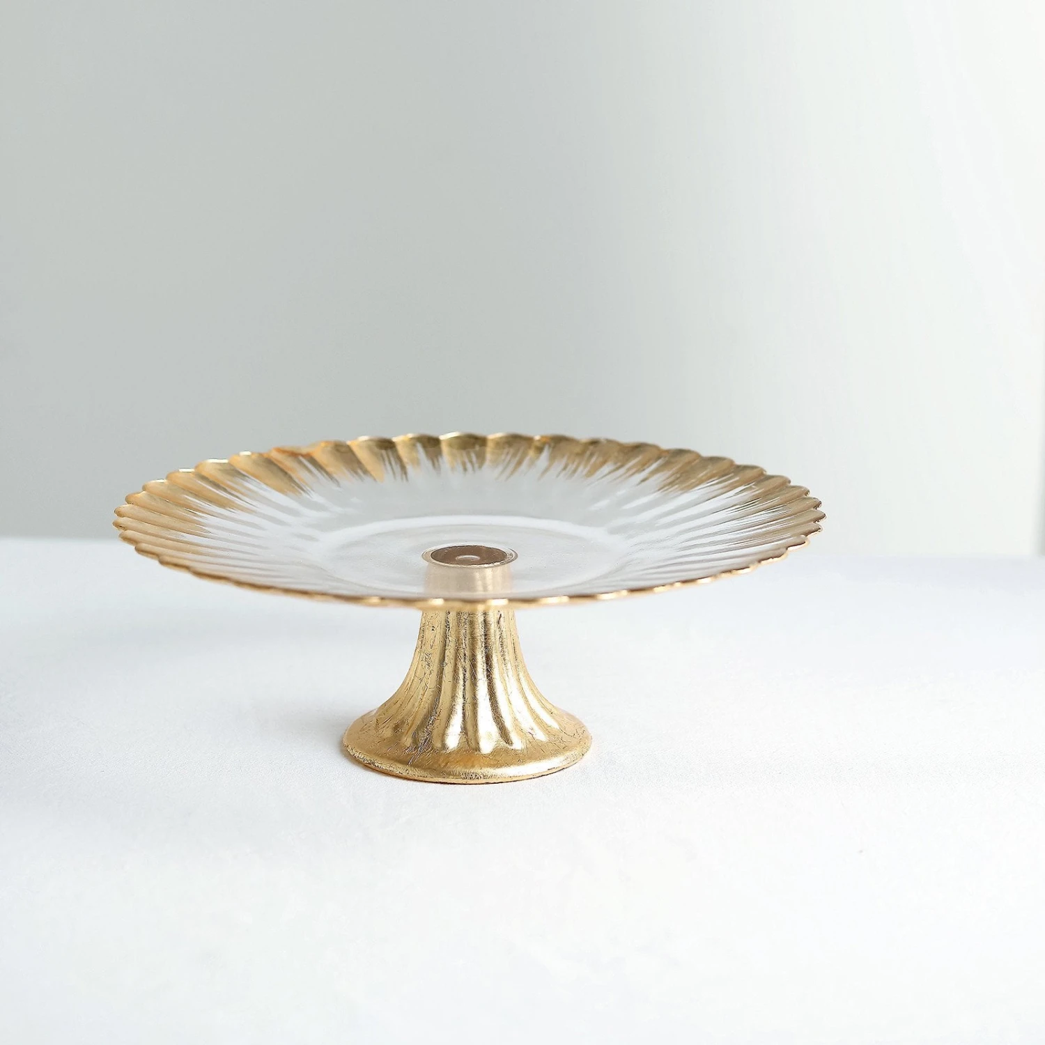 - Style: Foil Rim Pedestal Glass Cake Stand