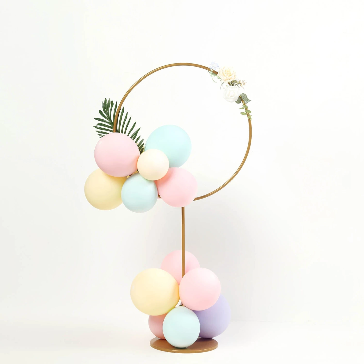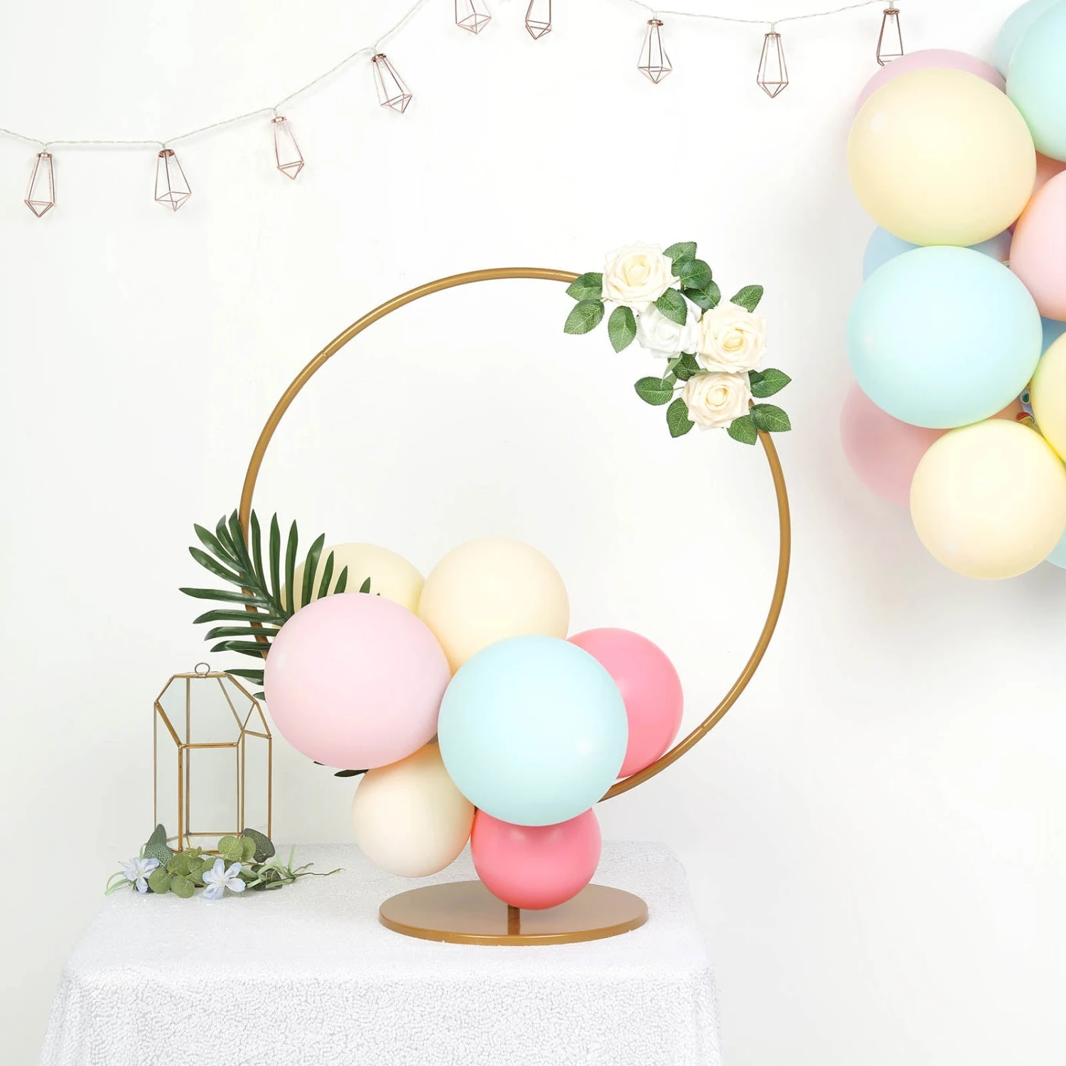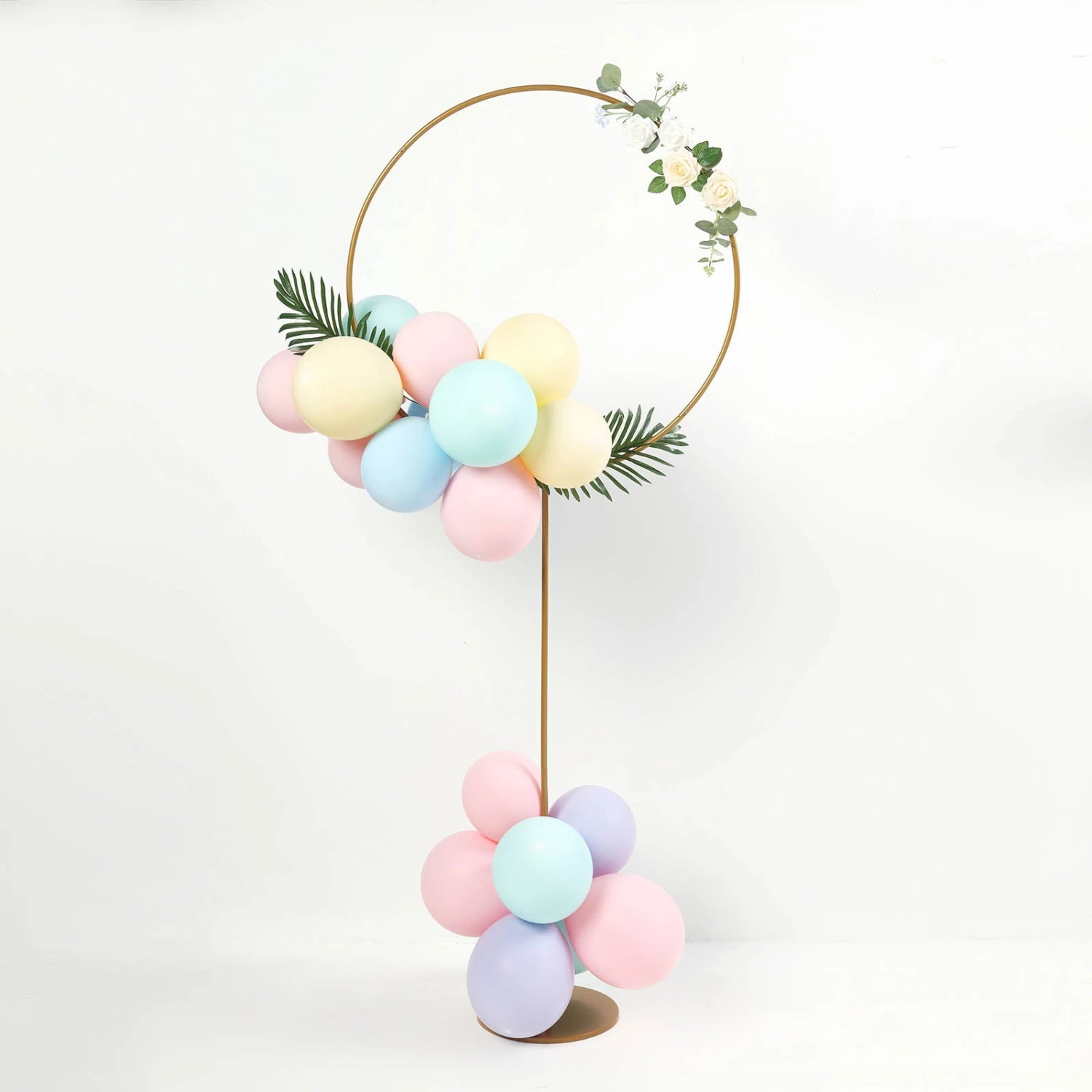 - You can wrap some colorful artificial flowers, leaf garlands, wires, and branches around the round metal wreath frame to make beautiful flower wreaths, or decorate it with ribbons, balloons, and colorful fabrics.
