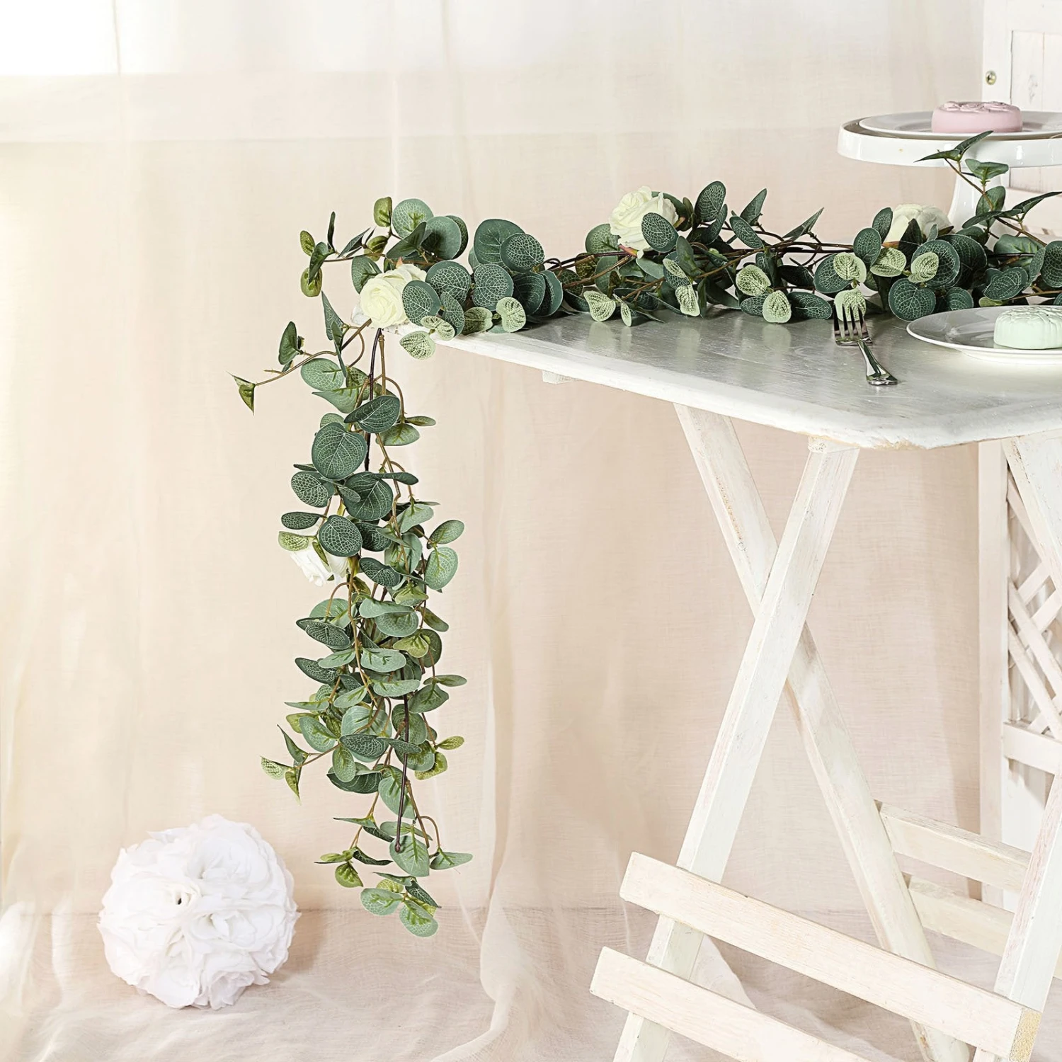 - Garland Type: Eucalyptus Leaves with Rose Heads