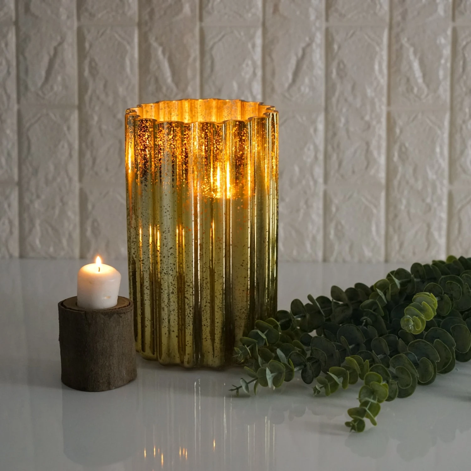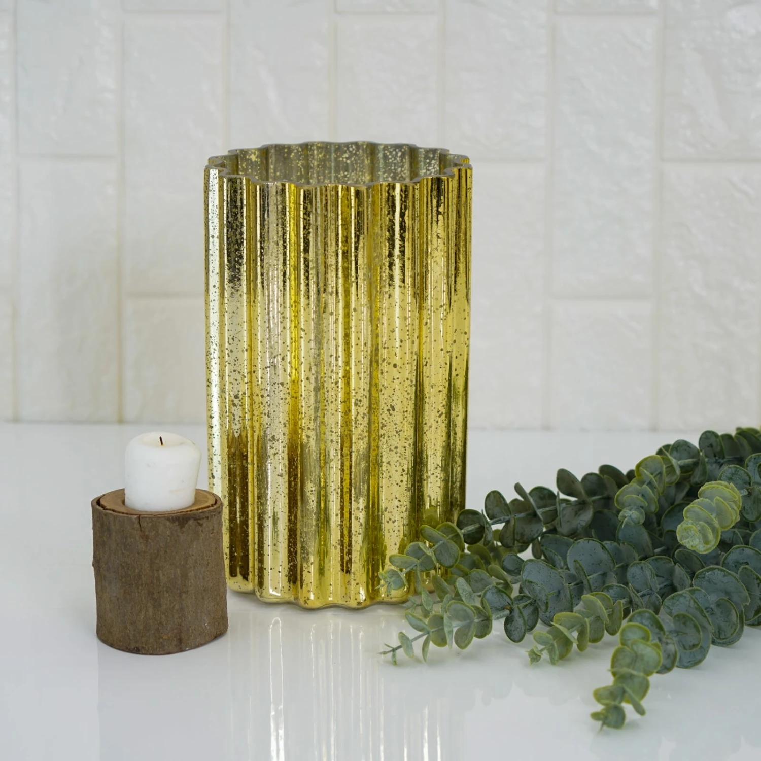 - Style: Wavy Design Hurricane Mercury Vase