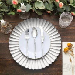 6 Pack | 13″ Scalloped Shell Pattern Plastic Charger Plates, Round Disposable Serving Plates
