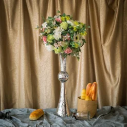 2 Pack Clear Ribbed Pedestal Heavy Duty Glass Vases, Tealight Votive Candle Holders 9″