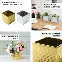2 Pack | 5″ Brush Textured Ceramic Square Flower Plant Box, Cube Shaped Planter Pots
