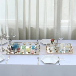 Gold Metal Geometric Mirrored Serving Tray, Octagon Vanity Decorative Tray – 14″x9″