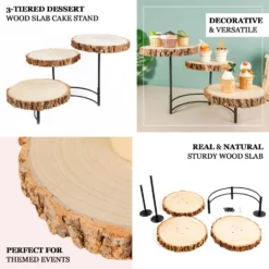 12″ Tall | 3-Tier Wood Slice Pedestal Riser, Rustic Half Moon Cheese Board Display Stand