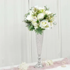 2 Pack | 32″ Gold Geometric Crisscross Metal Frame Centerpieces, Open Column Pedestal Flower Stands