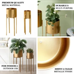 2 Pack | Modern Gold Metal Planter Stand, Decorative Indoor Planter Pots – 25″ | 27″