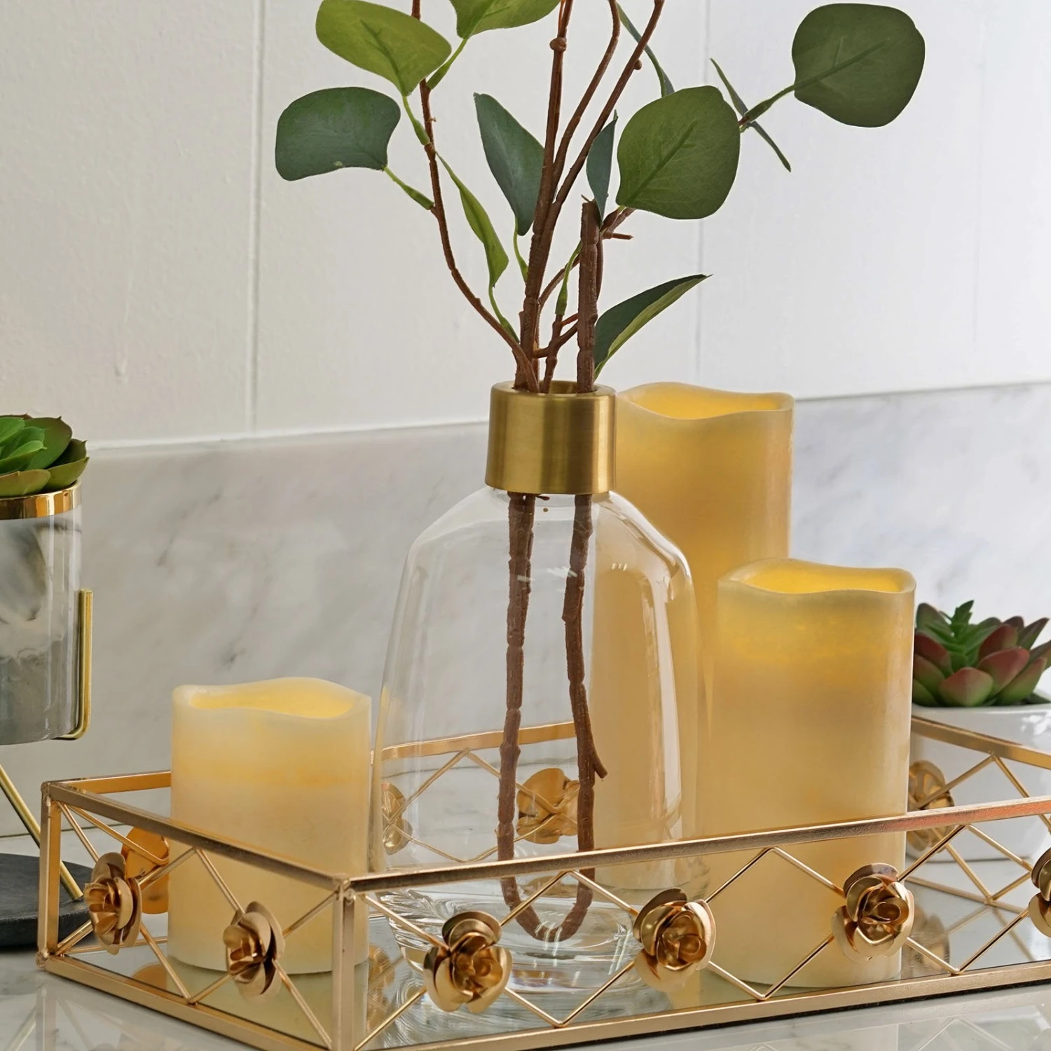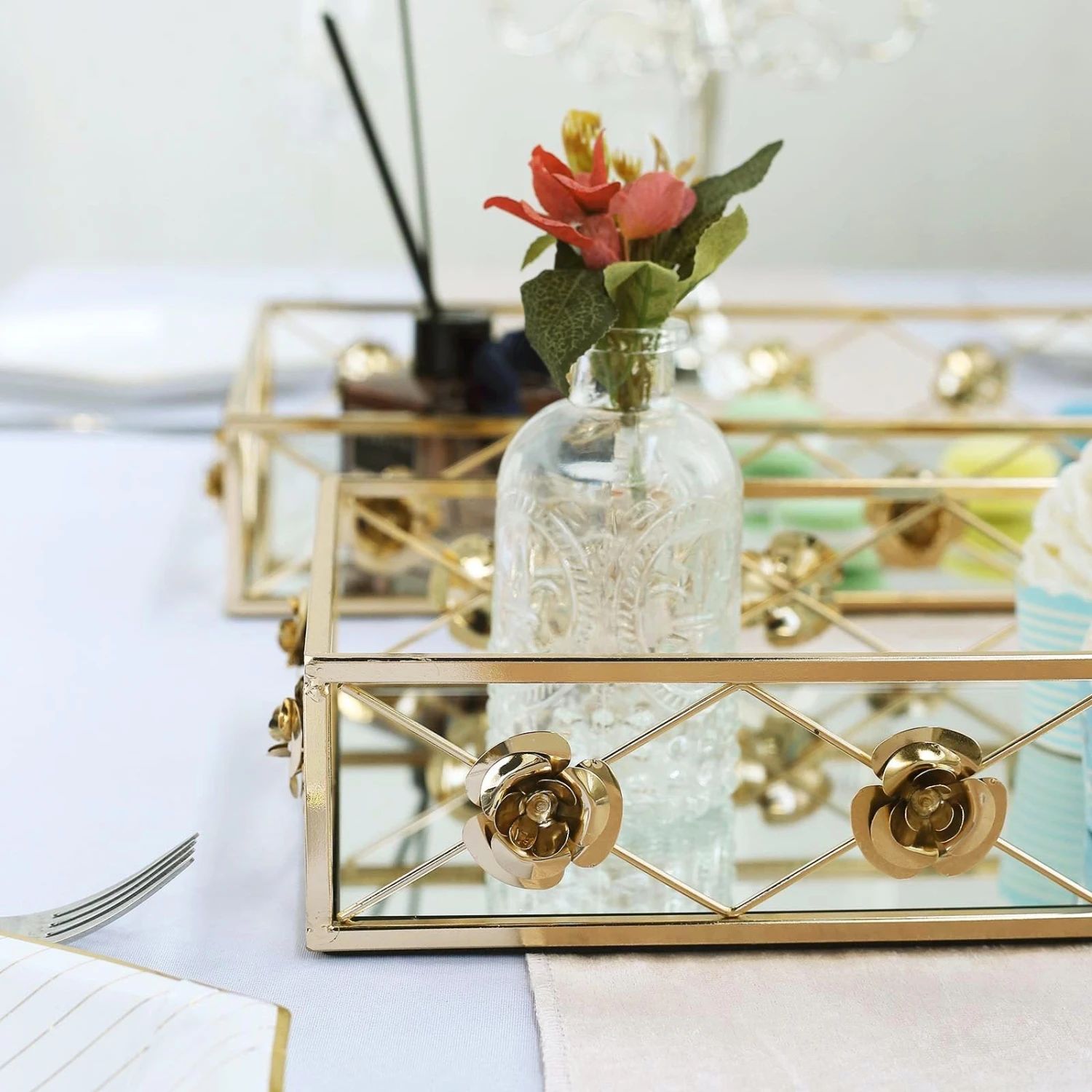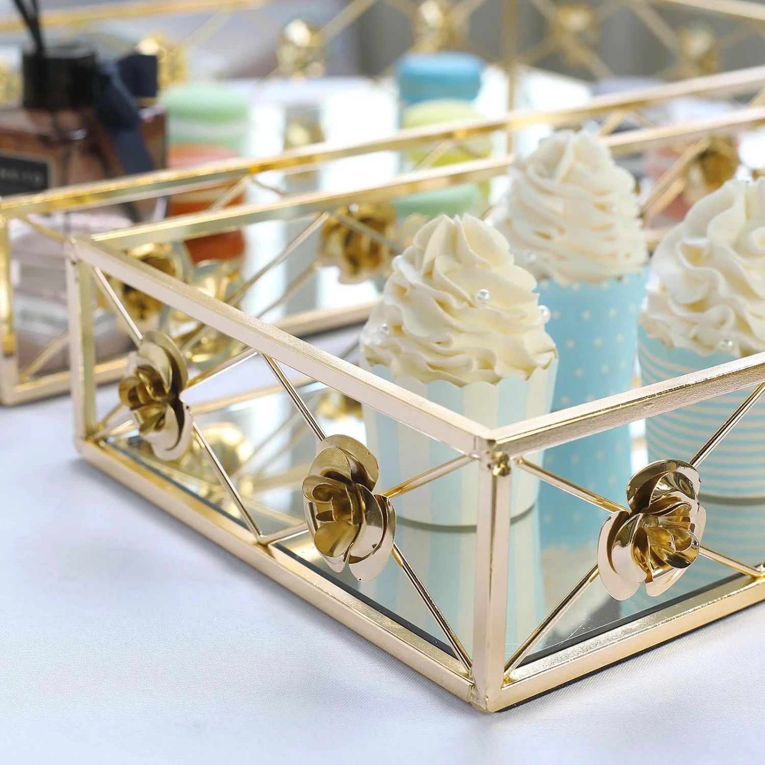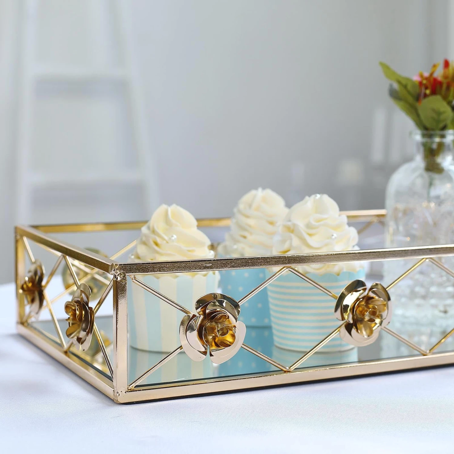 - Style: Rectangular Metal Tray w/ Glass Mirrored Top
