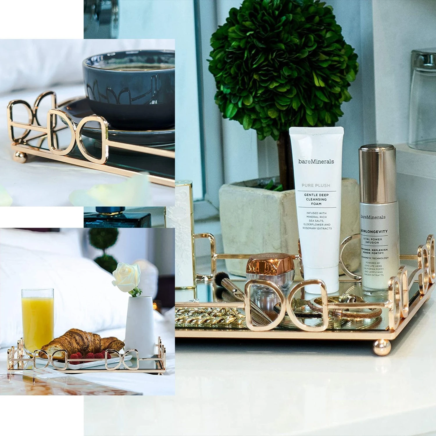 - Quantity: Set of 2 Mirrored Vanity Trays
