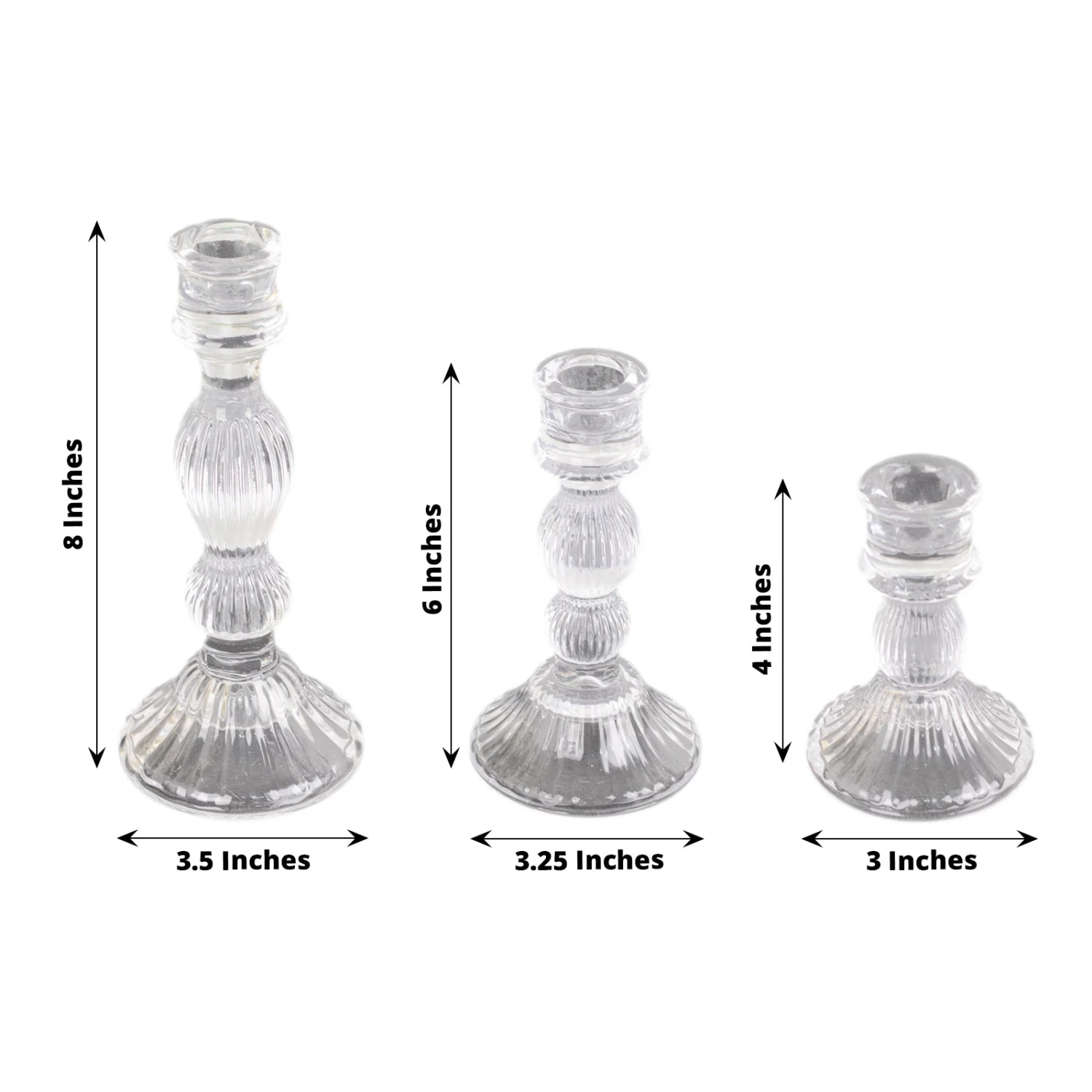 - Medium Candle Holder: 6″H x 3.25″ Base Dia.