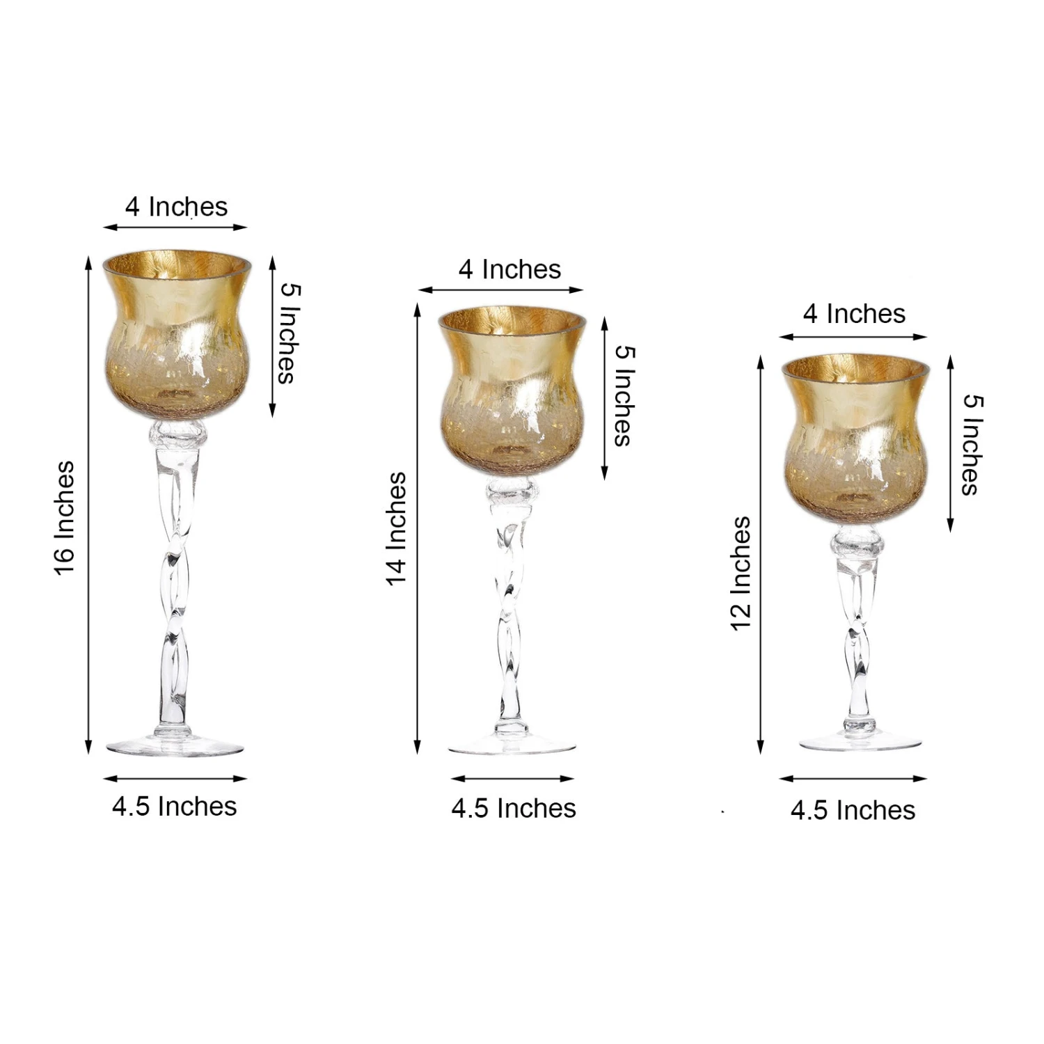 - Quantity: Set of 3 Glass Vases (16″/14″/12″)