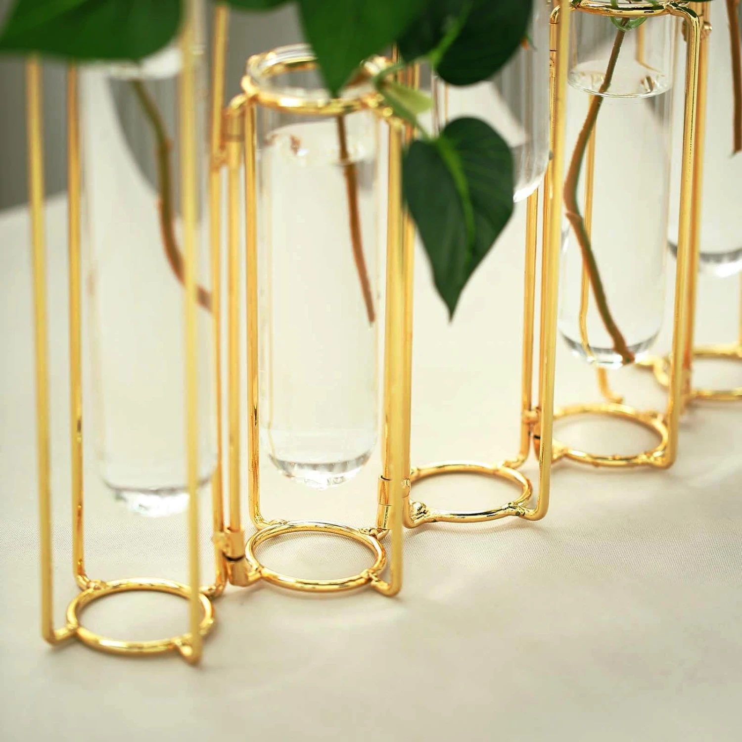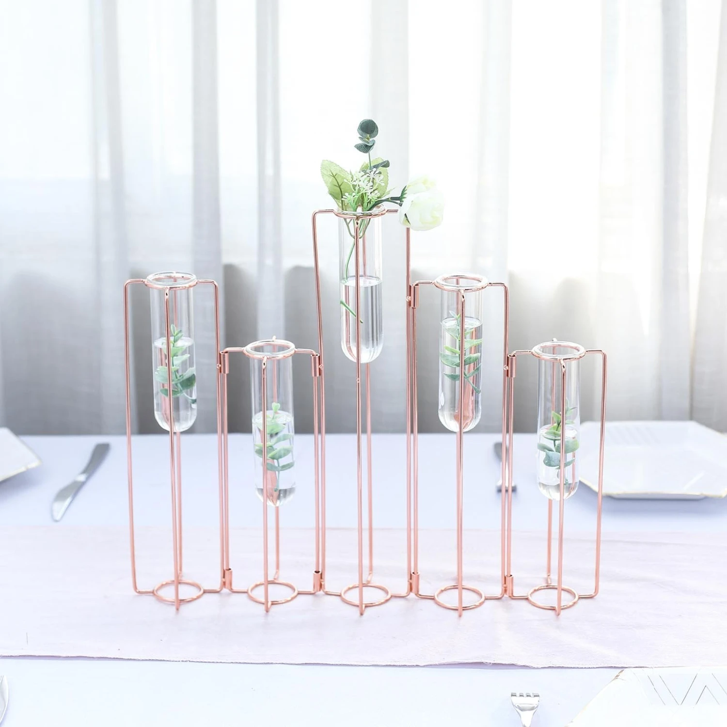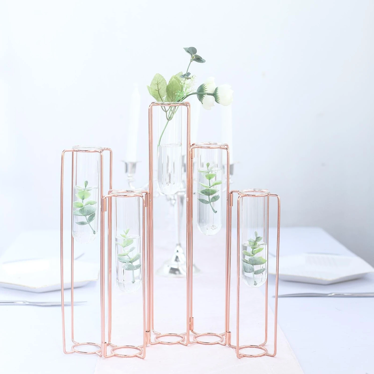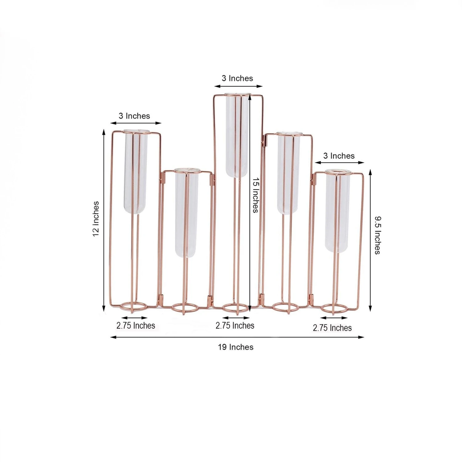 - Quantity: 5 Conjoined Metal Vases with 5 Glass Tubes
