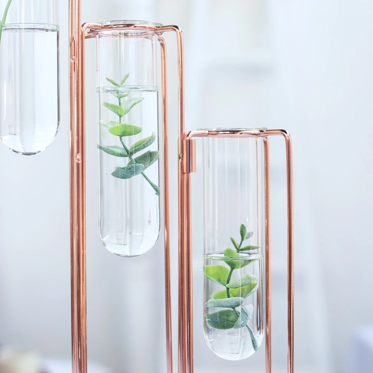 - Contents: (5) Metal Holders, (5) Glass Tubes (3 different-sized vase holders)