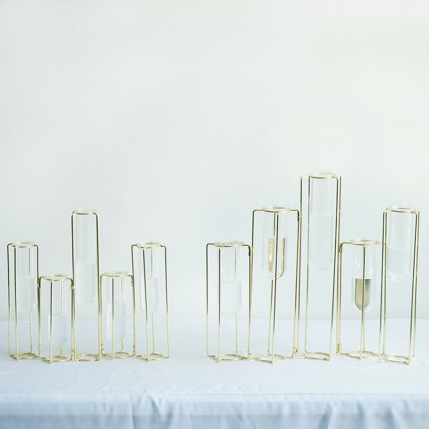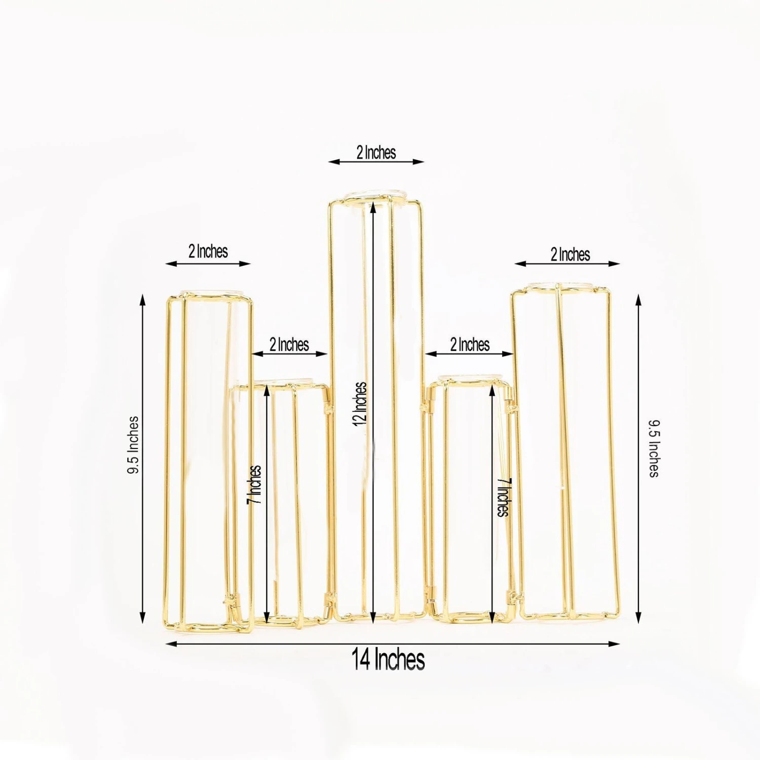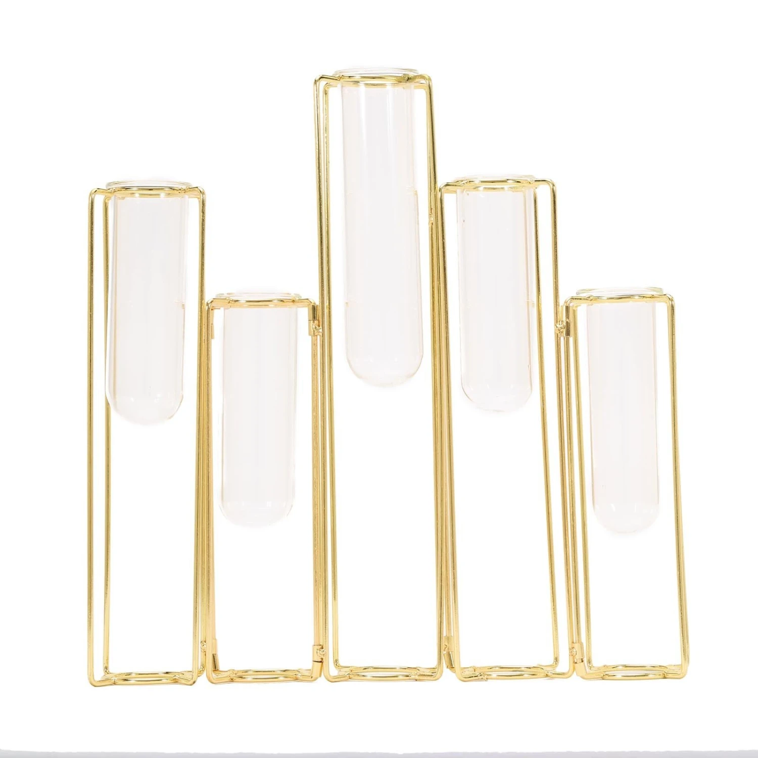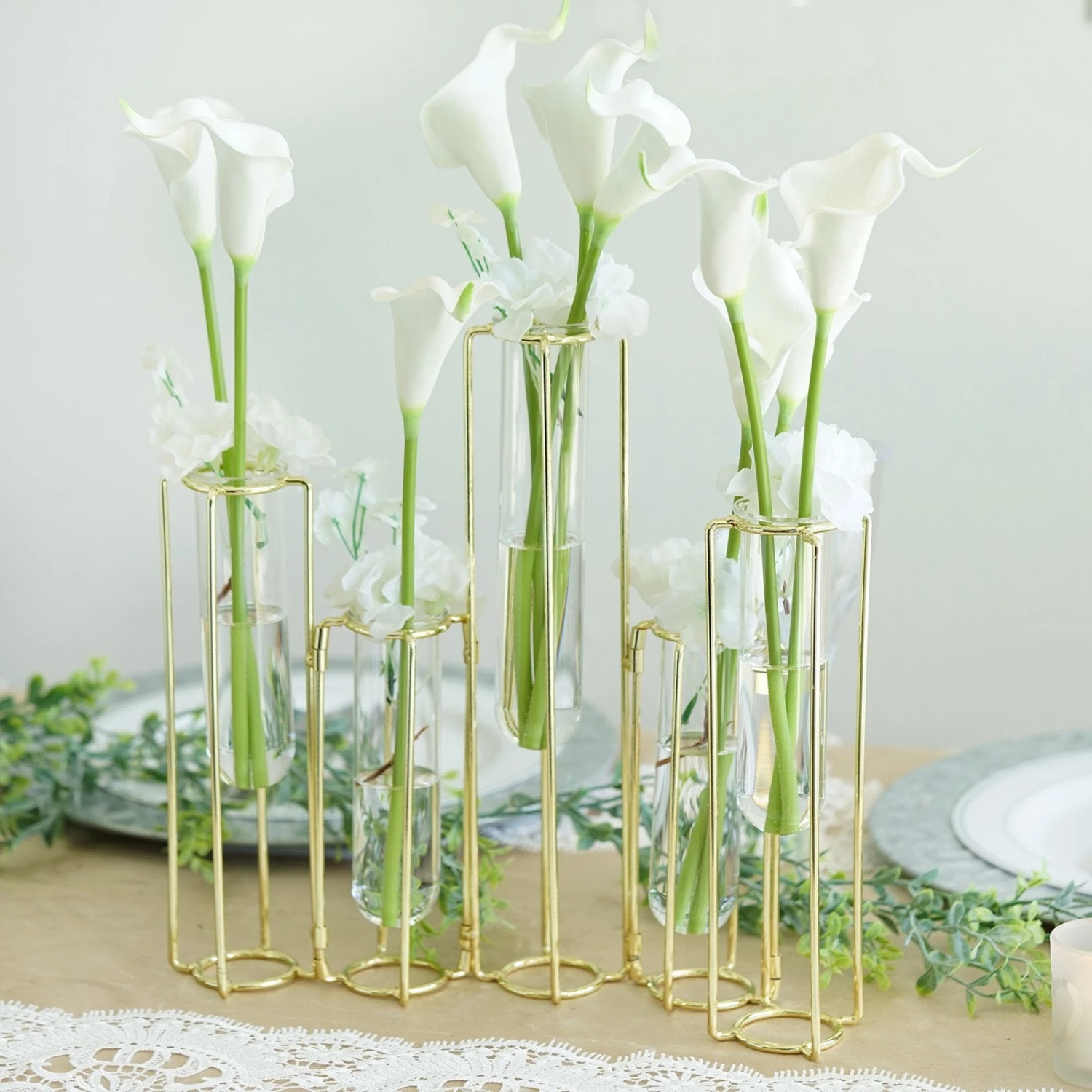 - Quantity: 5 Conjoined Metal Vases with 5 Glass Tubes