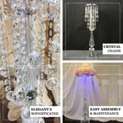 Acrylic Crystal Chandelier Bouquet Pillar Centerpiece, Large Flower Arrangement Table Stand 32″ Tall