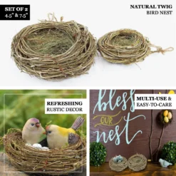 Set Of 2 | Natural Preserved Twig Bird Nest Planter Boxes, Flower Baskets – 4.5″, 7.5″