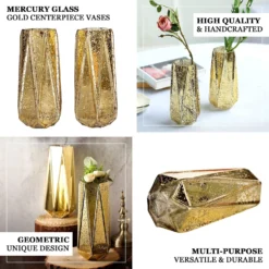 2 Pack | Gold Crystal Embellishment Trumpet Table Centerpiece, Reversible Plastic Flower Vase
