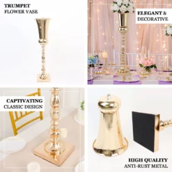 Set Of 3 – Glass Cylinder Vases With Gold Honeycomb Base – Glass Candle Holders – 8″, 10″, 12″