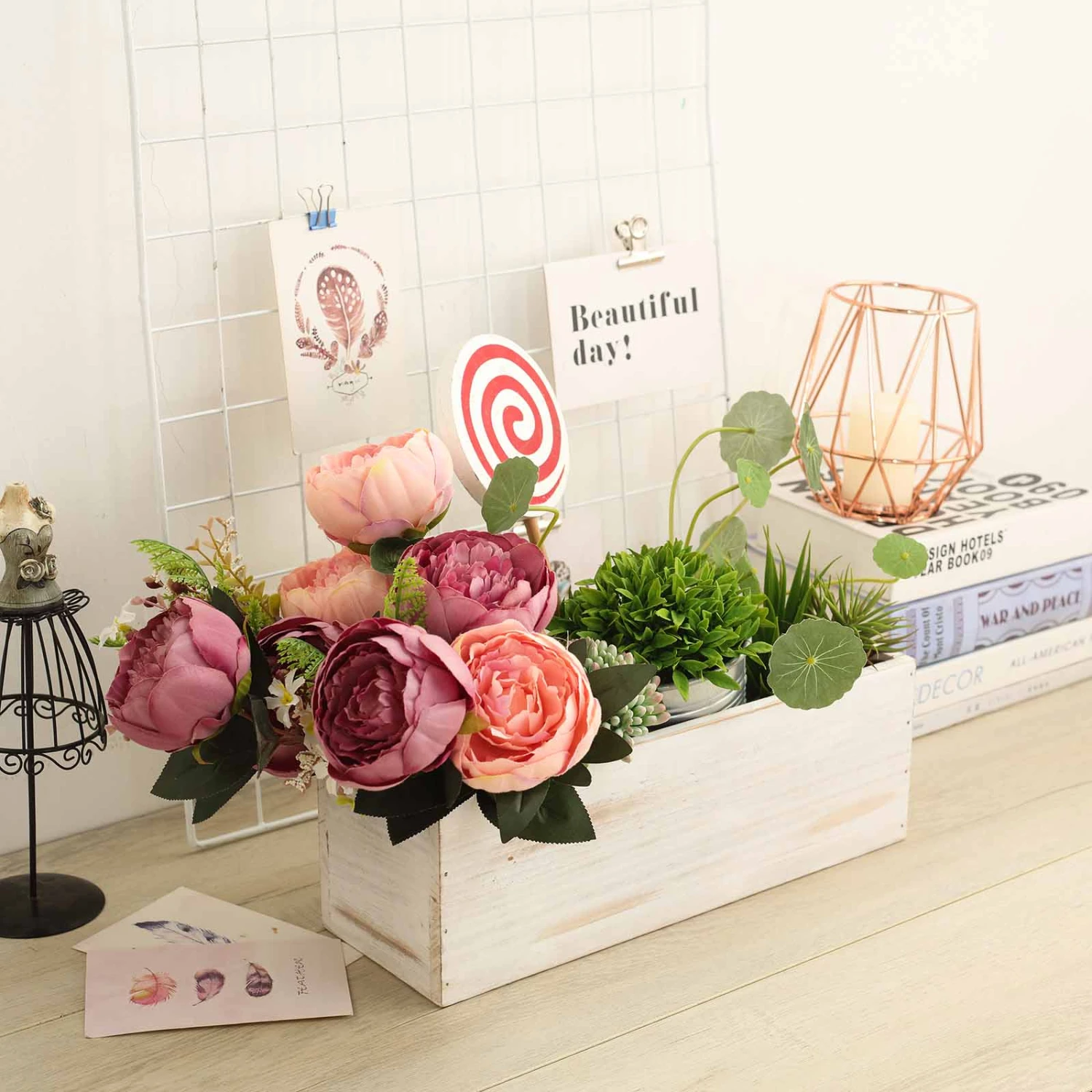 - This listing is for wood box (pot, planter). Flowers and greenery not included.